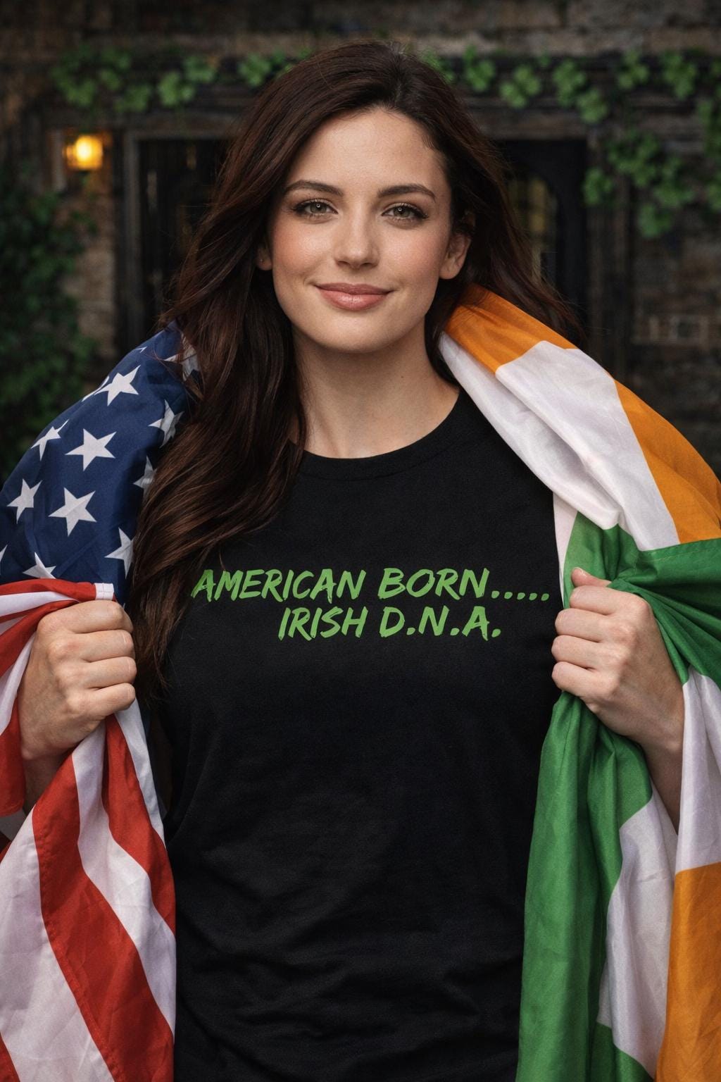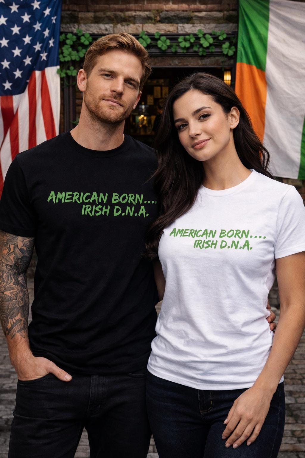 • “American Born… Irish D.N.A.” bold green print