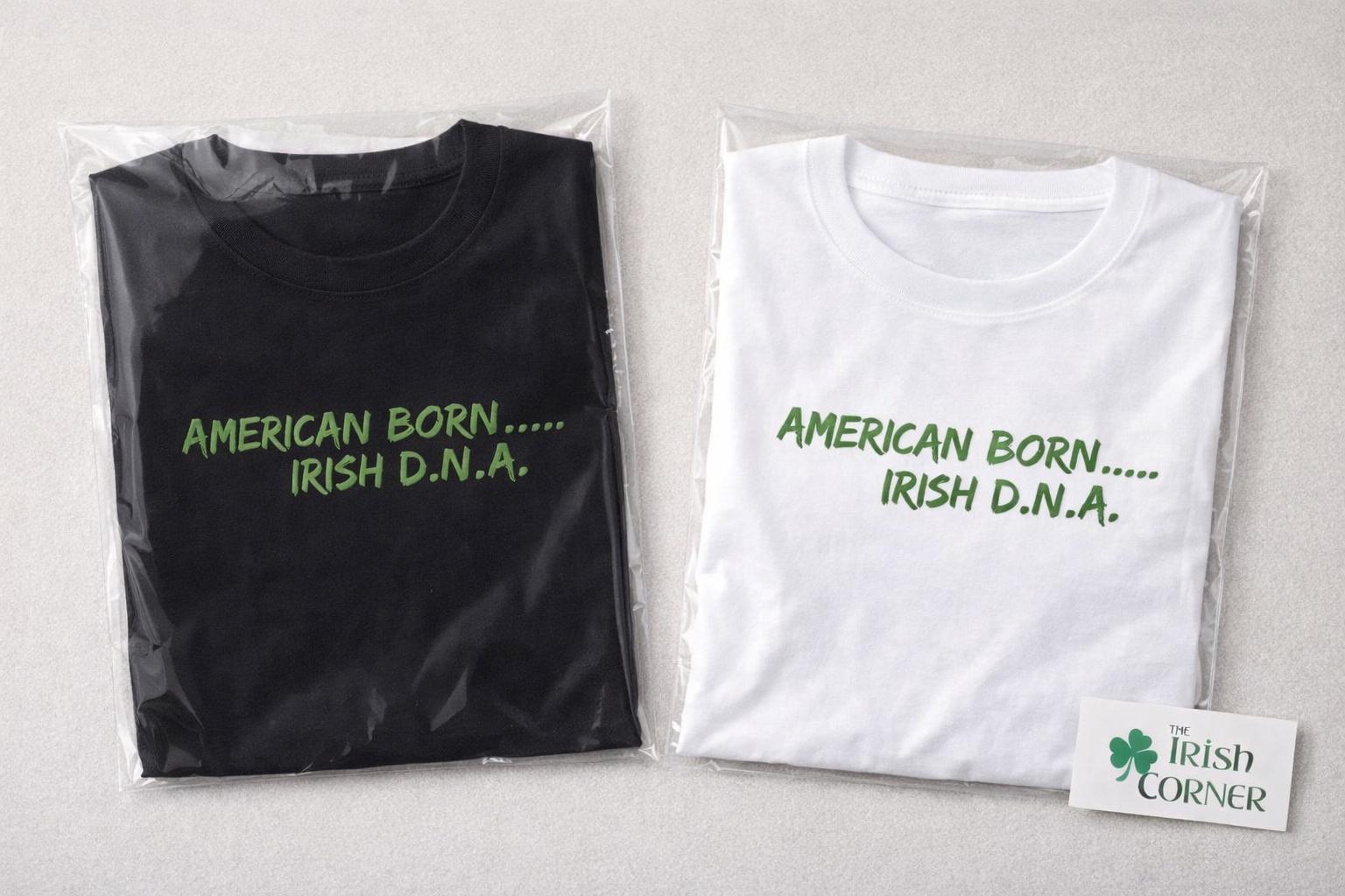 Each shirt is carefully folded and packaged in a protective clear sleeve — ready for gifting or safe delivery. Every order includes The Irish Corner branding for a clean, premium presentation.