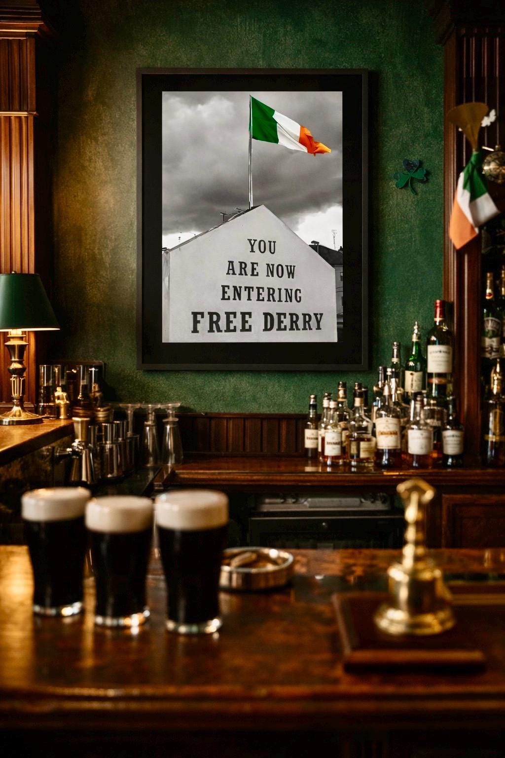The “You Are Now Entering Free Derry” mural stands in the Bogside area of Derry, North of Ireland, and remains one of the most recognised symbols of modern Irish history.