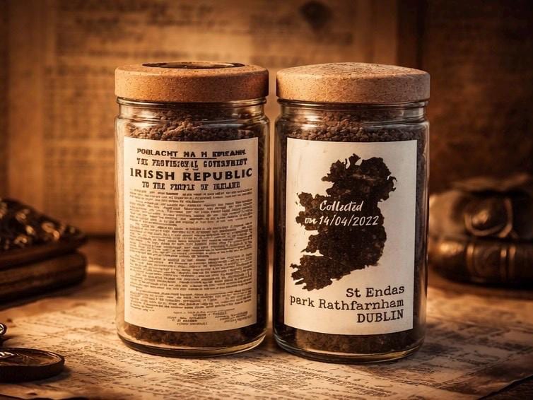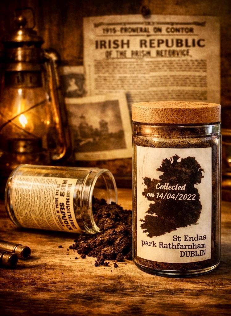 This carefully gathered soil comes from the grounds of St Enda’s Park, a place deeply connected with Ireland’s cultural and revolutionary history and closely associated with the events surrounding 1916.