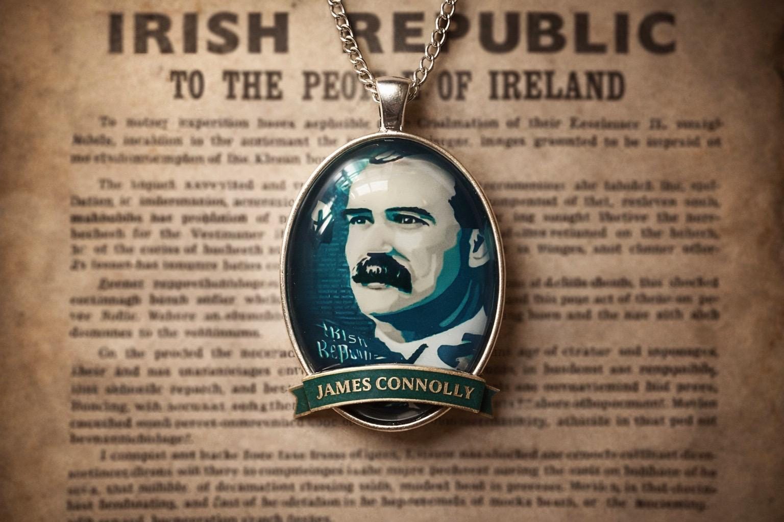 This James Connolly 1916 pendant marks the 110th anniversary of the Easter Rising. A bold Irish history keepsake for those who honour heritage and remembrance.