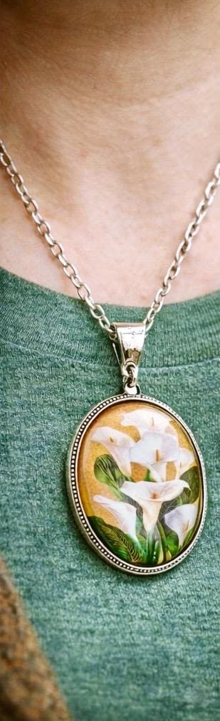 Available in round or oval format, or as a collector’s set of both, each piece features a detailed lily design set beneath a smooth glass dome and framed in silver.