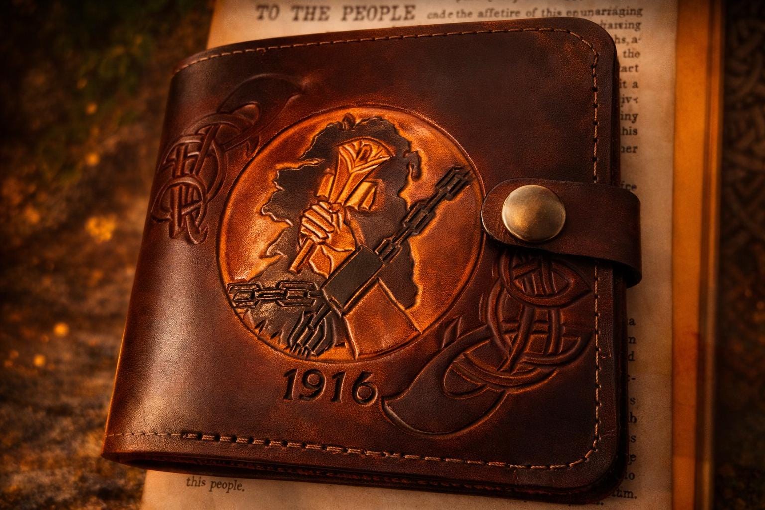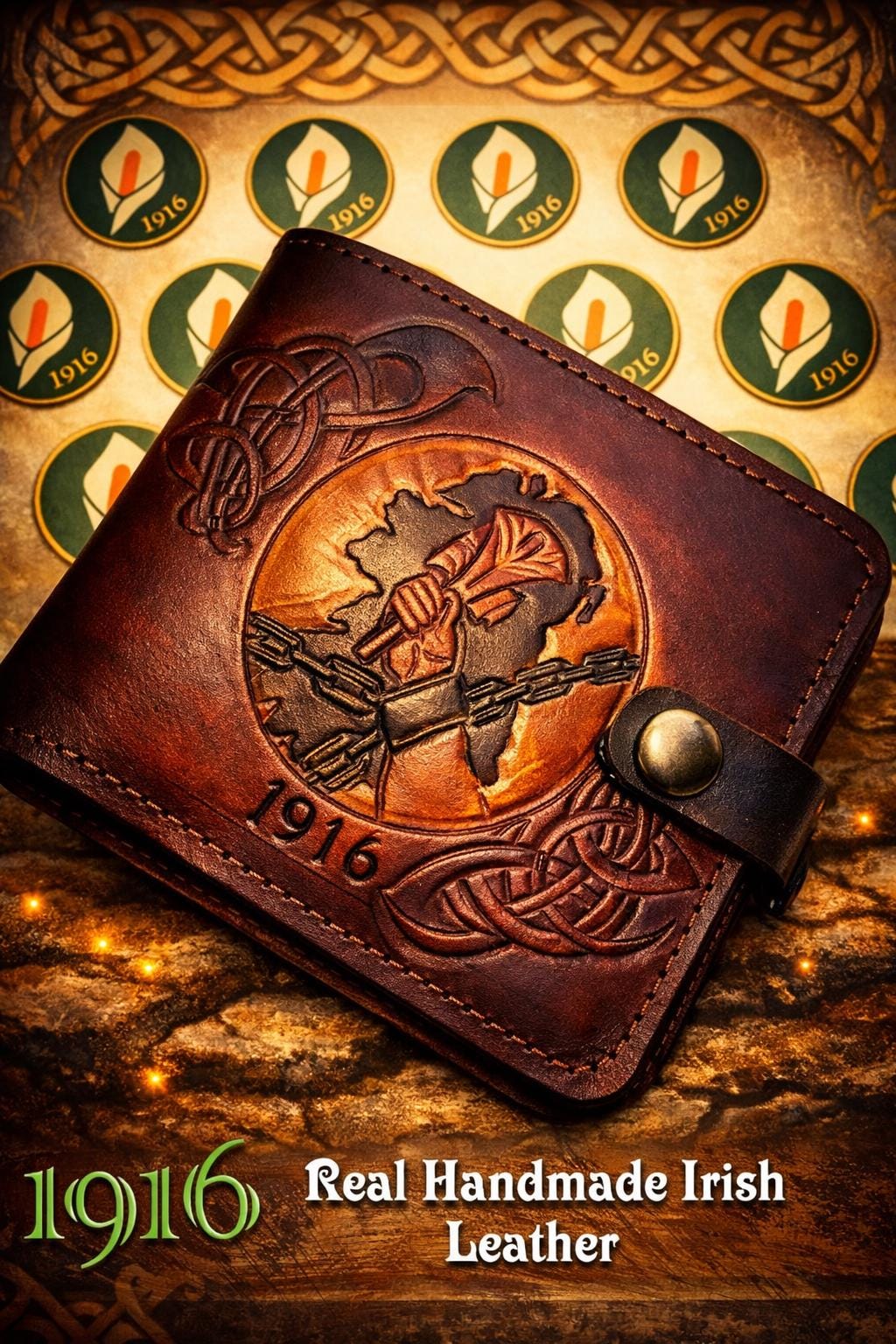 This powerful handmade leather wallet honours the spirit of 1916 — a tribute to courage, sacrifice, and Irish identity. Each piece is expertly handcrafted by a highly skilled Irish craftsman and former POW, bringing lived experience, heritage, and authenticity into every detail.