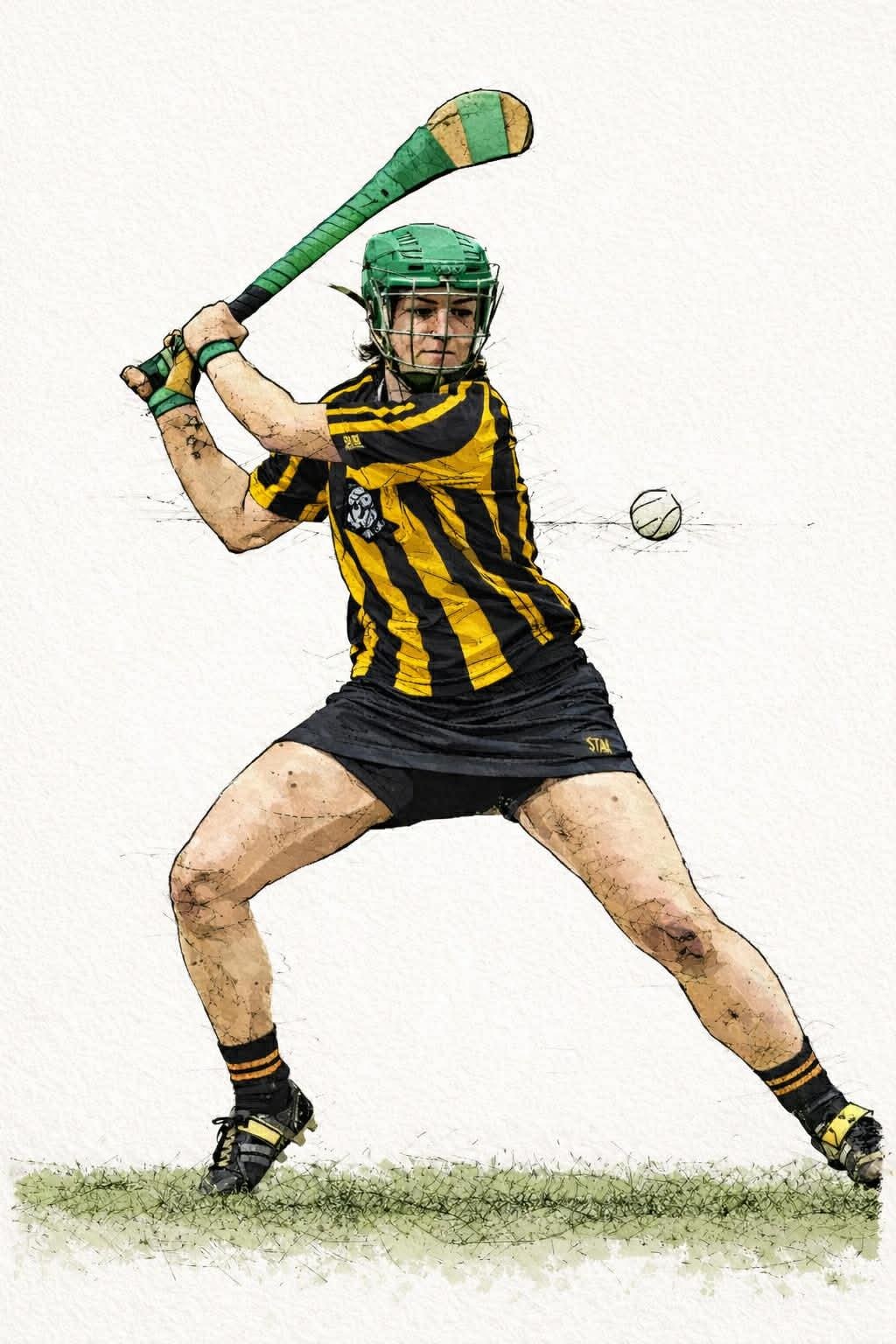 Excellent retro hand coloured personalised Camogie print.