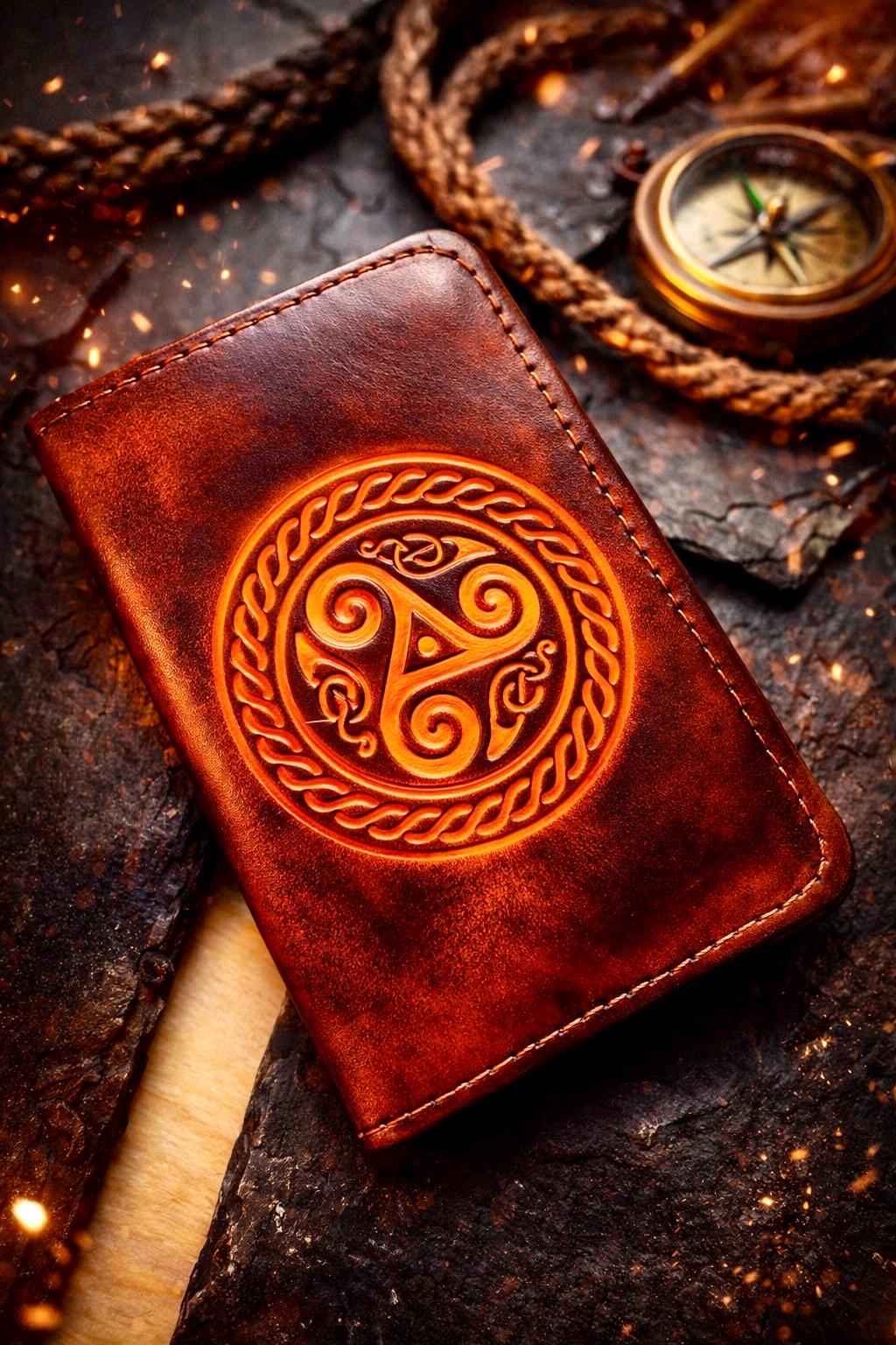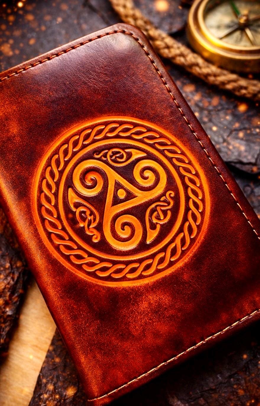 Embossed with traditional Celtic symbols representing goodwill and long life, every wallet carries meaning as well as style — a subtle nod to heritage and identity.