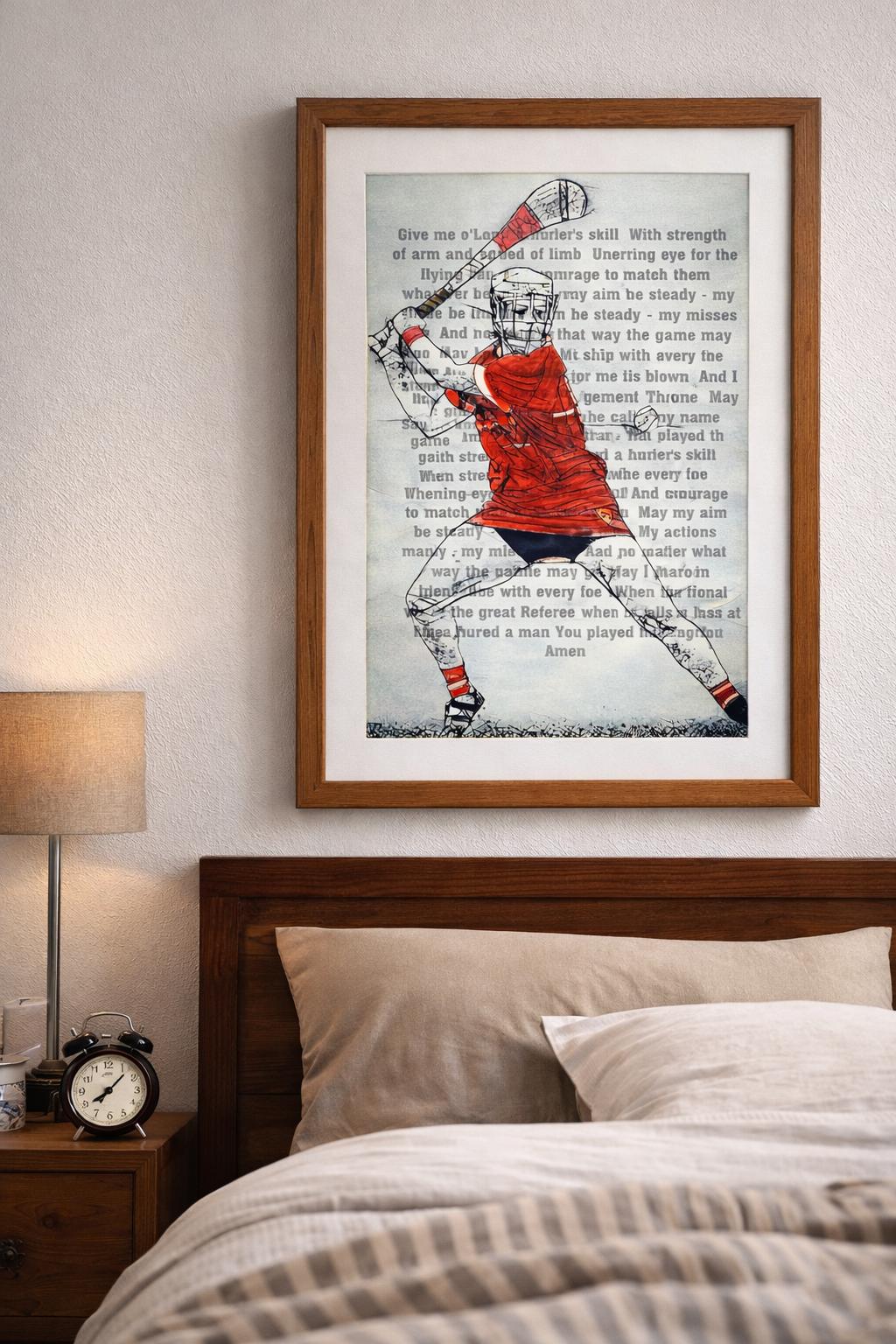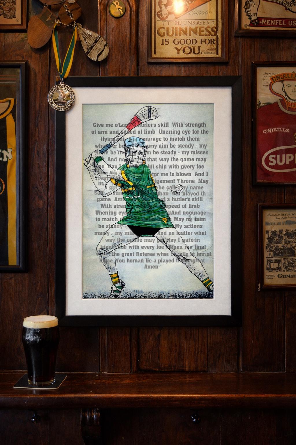 This unframed Hurling or Camogie Prayer print features an original DeBurca hand-drawn illustration, professionally finished and altered to your requested colour and style. Blending Irish tradition, sport and heritage, it’s a powerful piece created for those who understand that character, humility and heart matter just as much as silverware.