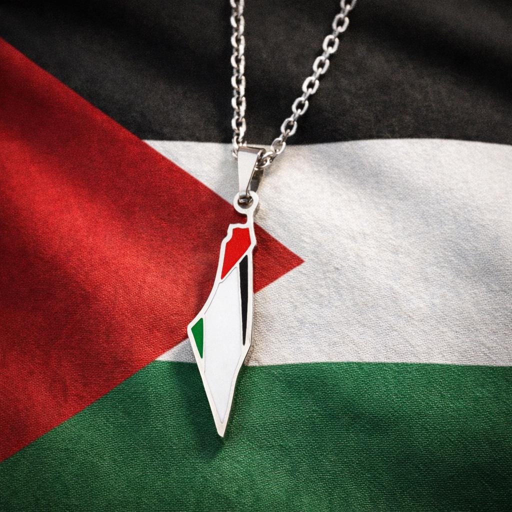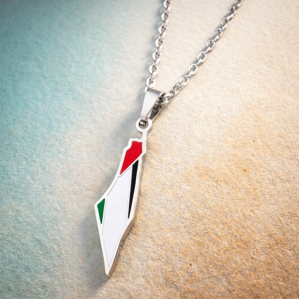 Beautiful, elegant and simple. One-inch Palestine map pendant on a silver chain.