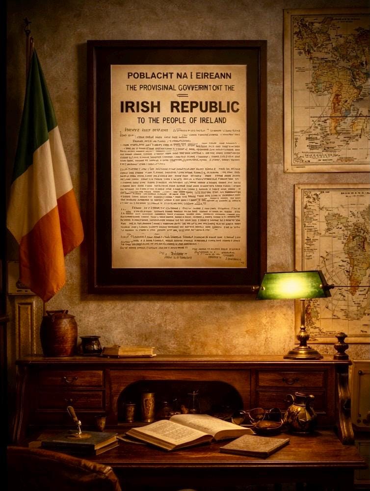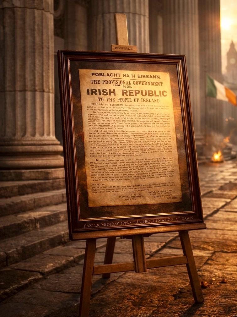 The 1916 Irish Proclamation is one of the most important documents in Irish history — the declaration that announced the birth of the Irish Republic during the Easter Rising.
