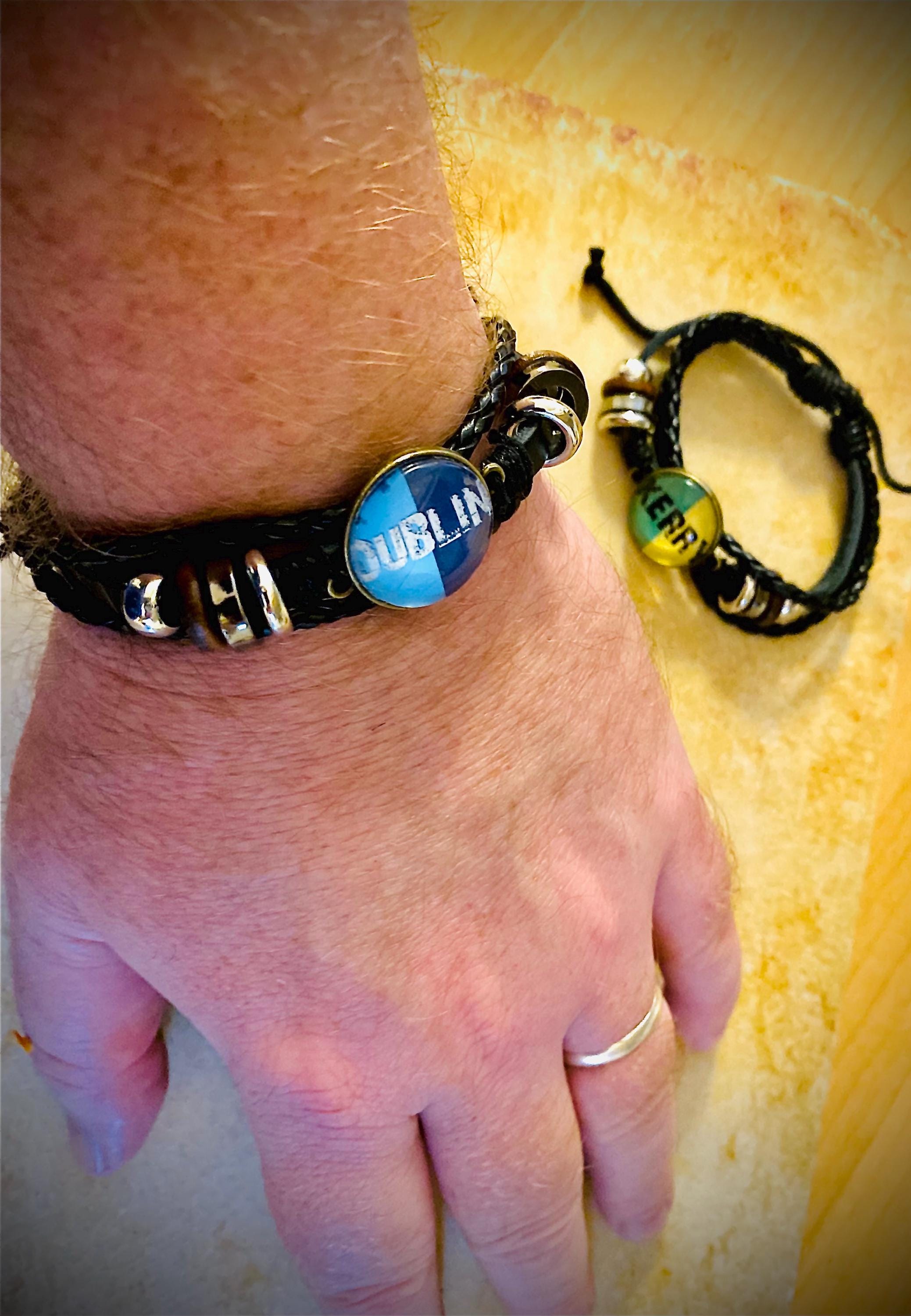 Real leather County or club colours. Simply tell us the County, Country or simply the team colours you want on your band. Each band made to order and gorgeous when finished. Dispatches in its own bag and makes the perfect gift. let us know which County or club colours you require. You can have as many of any county in your order.