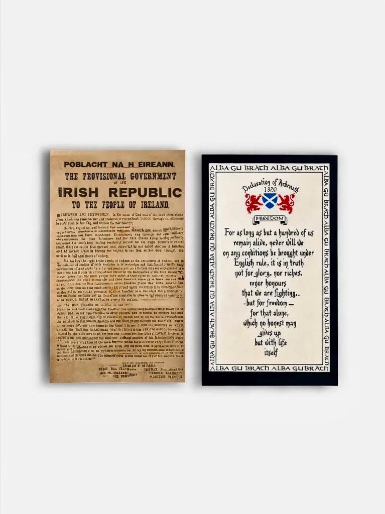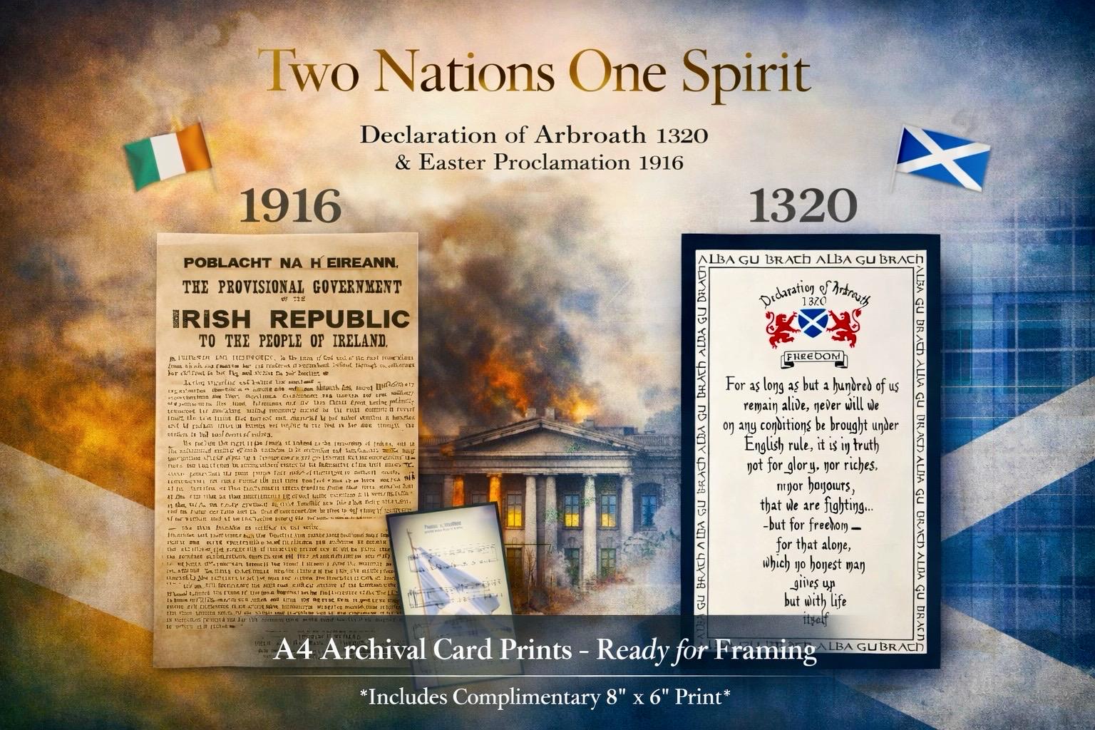 This A4 archival card print set brings together two of the most powerful documents in Celtic history — a tribute to resilience, identity and the enduring pursuit of liberty.