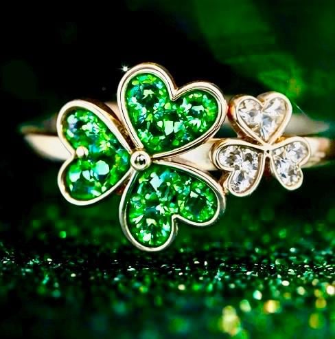 Beside it rests a delicate crystal shamrock — a subtle contrast that adds elegance and balance, like tradition meeting modern grace.