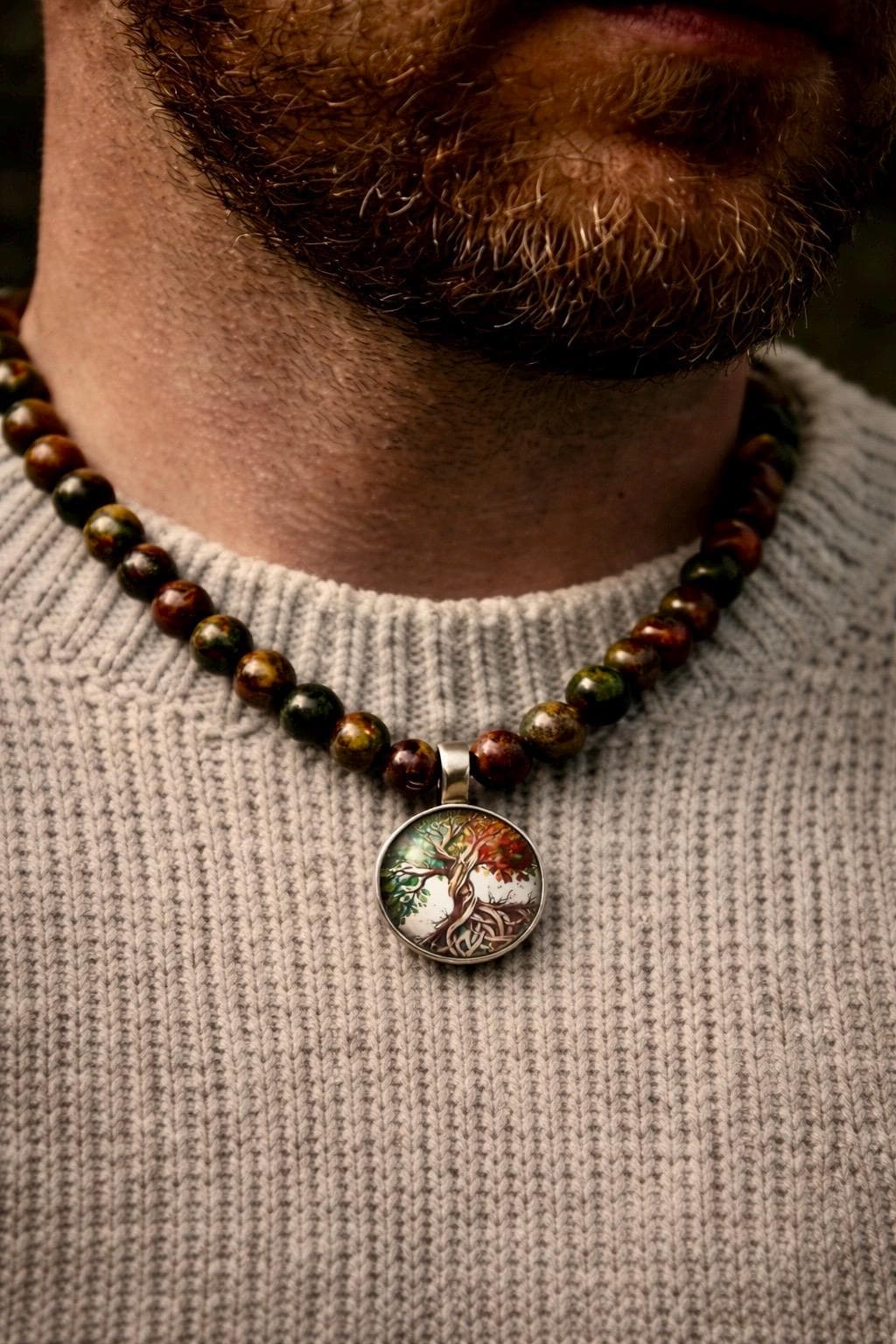 Masculine in tone but fully unisex in spirit, this necklace suits those drawn to woodland landscapes, heritage symbolism and natural materials.