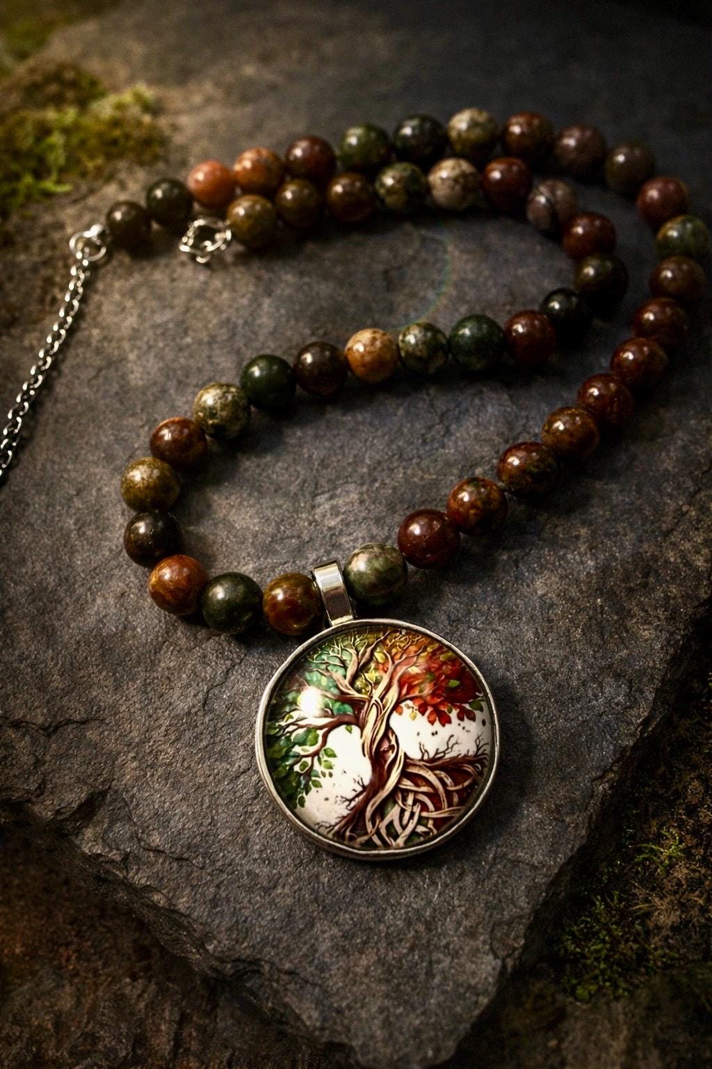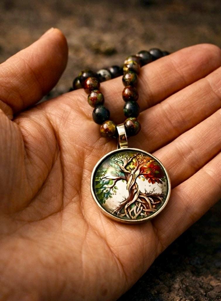 The Earthkeeper is a grounded, handcrafted Tree of Life necklace inspired by the strength of woodland, stone and ancestral roots.