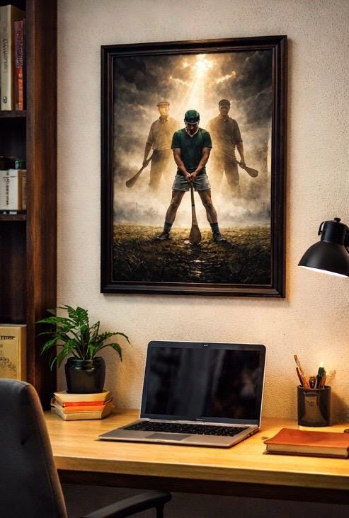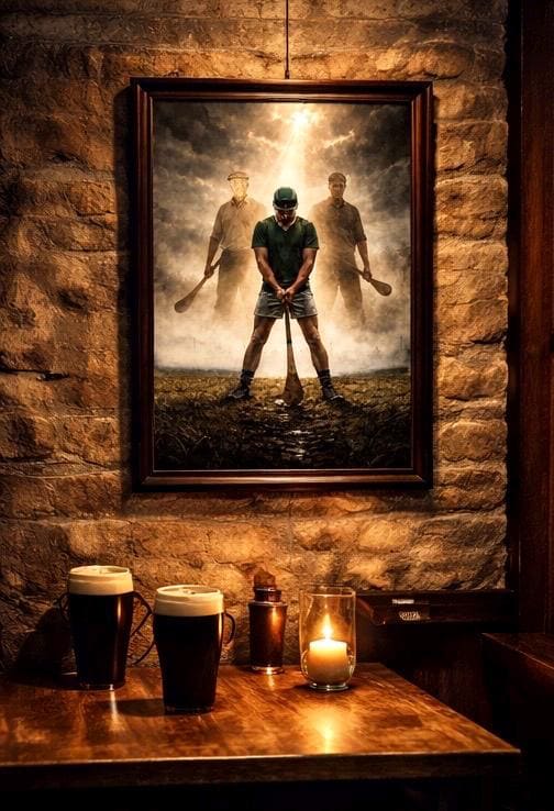 The Line of Ash is a cinematic, storm-charged Irish art print created for those who understand that Gaelic games are more than sport — they are lineage.