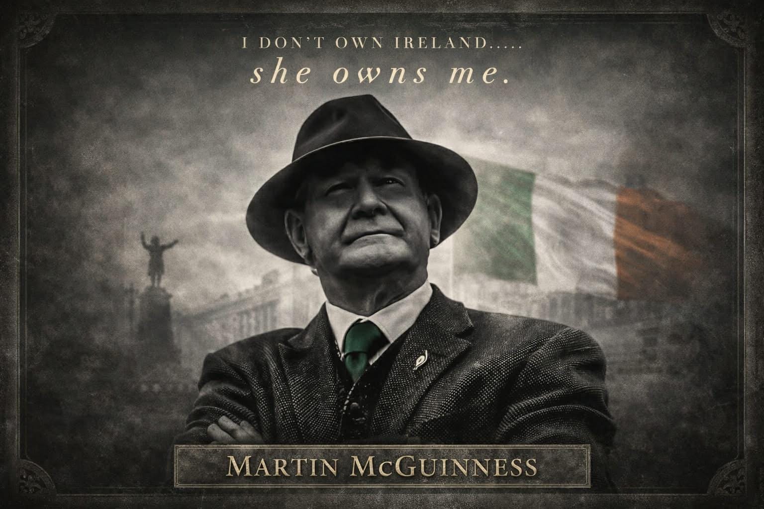 A bold tribute to one of Ireland’s most significant modern political figures — a powerful piece celebrating Irish identity, loyalty, and history.