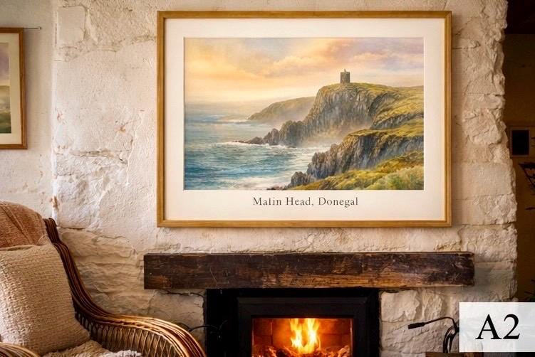 Created as a stylised artistic interpretation, this artwork reflects the feeling and atmosphere of Malin Head rather than a specific photograph — making it a timeless addition to any space.