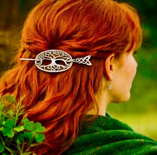 Set in a polished silver tone, this piece catches the light beautifully against natural hair tones, especially rich reds, auburns, and dark shades.