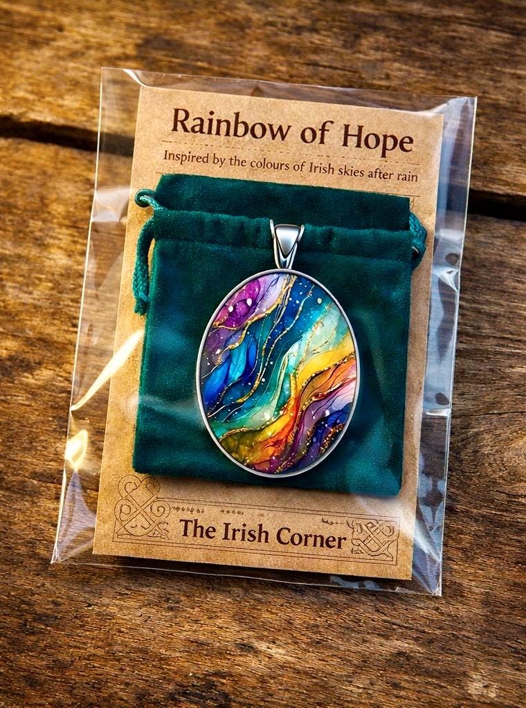 The “Rainbow of Hope” Necklace is inspired by those fleeting Irish skies —