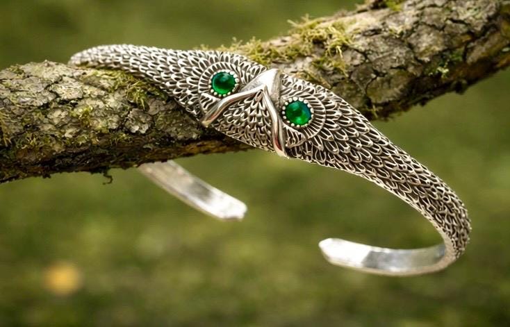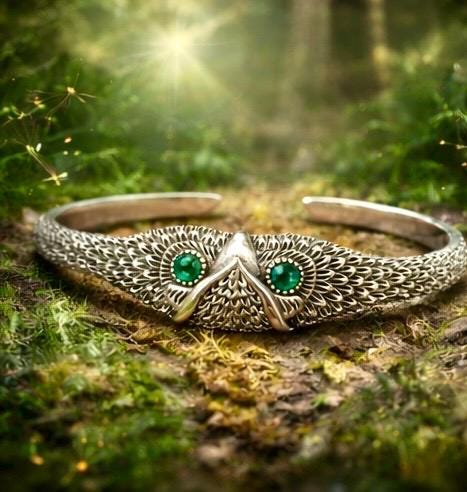 A sterling silver owl bracelet inspired by ancient Celtic guardians — symbolising wisdom, protection, and quiet strength.