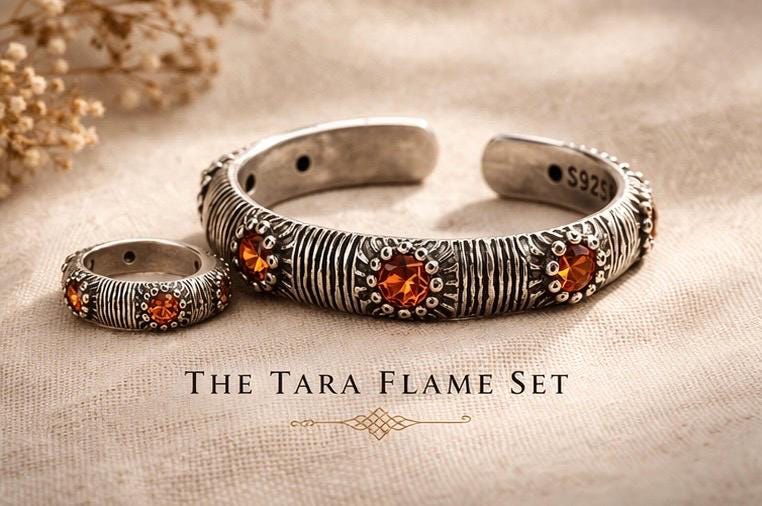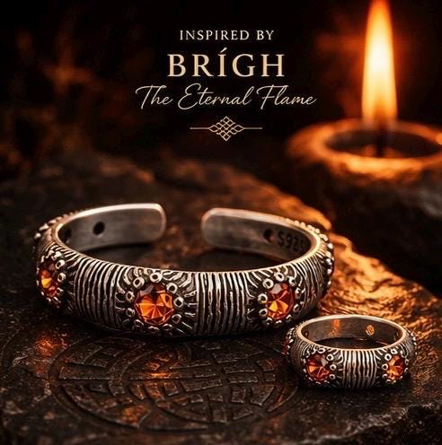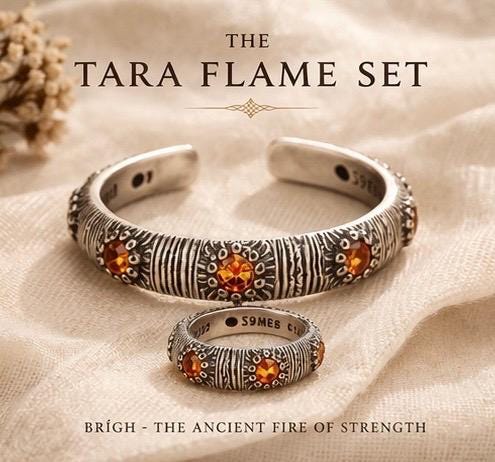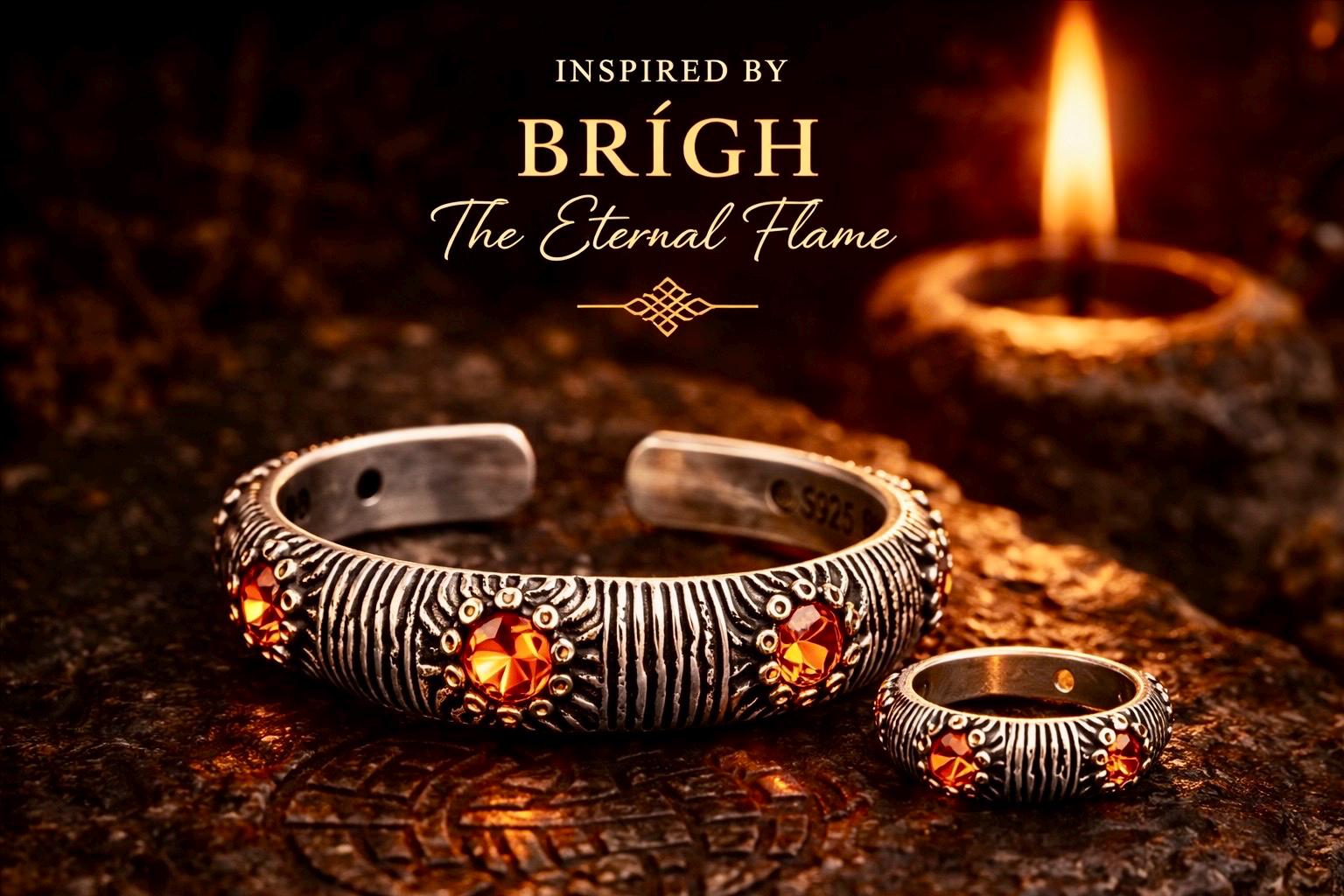 Rooted in the ancient lands of Tara and the spirit of Brígh (Brigid) — the Celtic goddess of fire, strength, and inspiration — this matching ring and bracelet carry a deeper meaning.