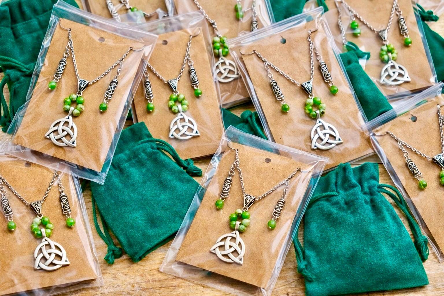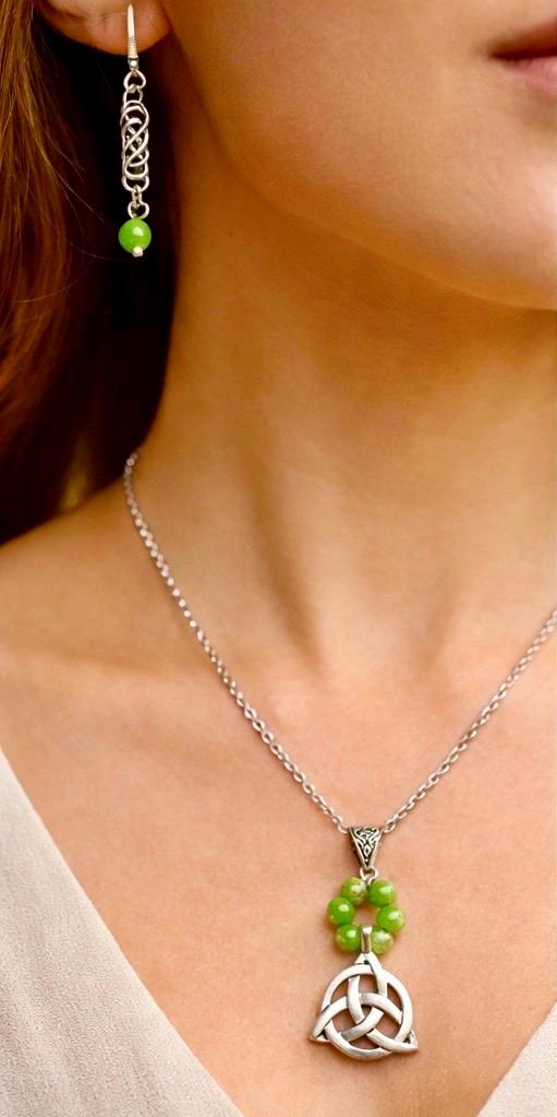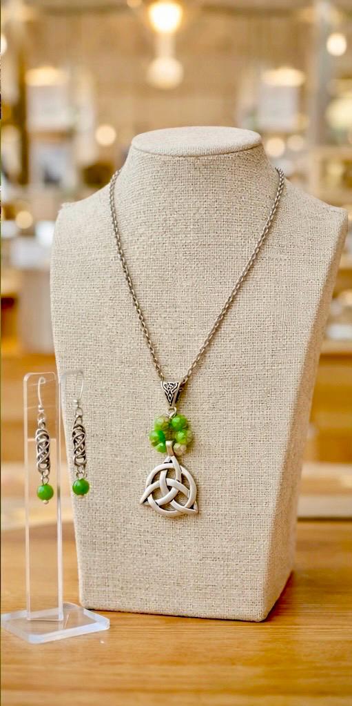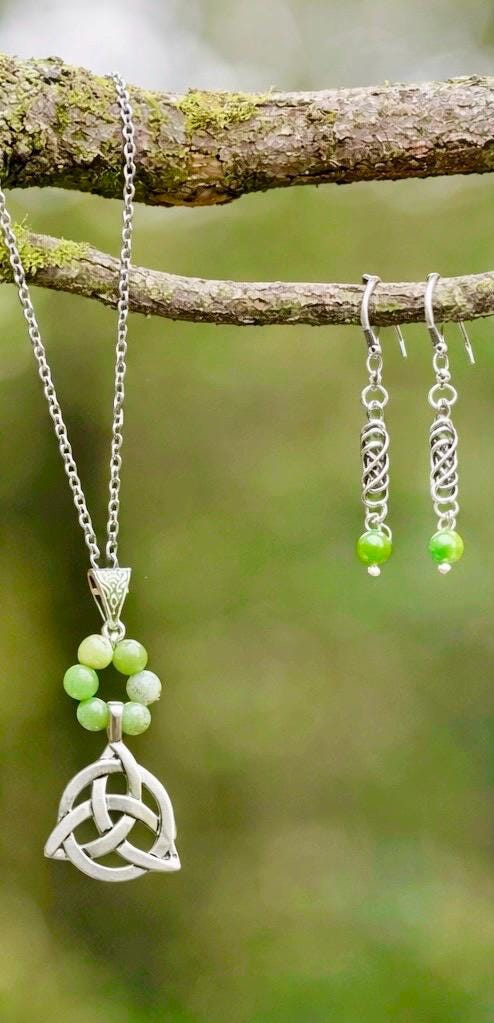 At the heart of the set lies the Celtic Trinity Knot — a timeless symbol of unity, eternity, and connection. Paired with rich green stone beads, each piece reflects the spirit of Ireland — from its rolling hills to its enduring heritage.
