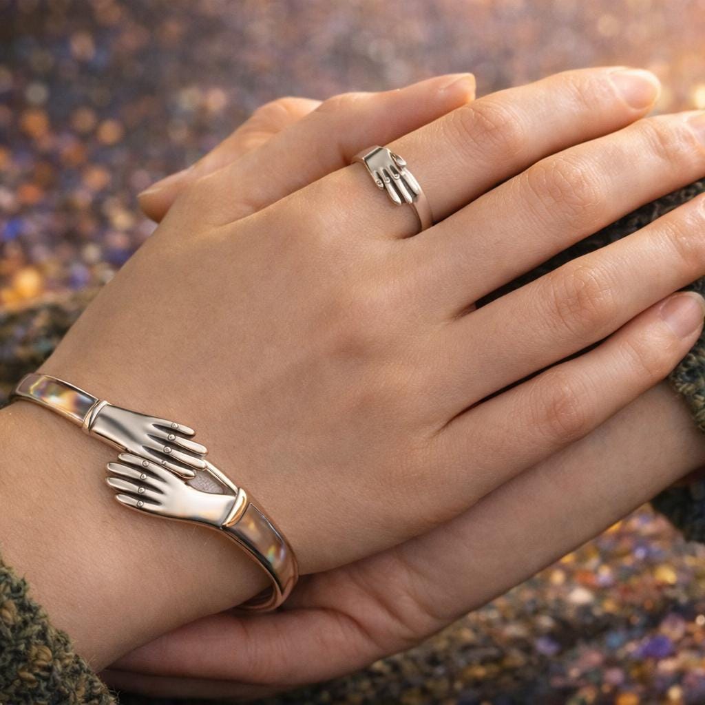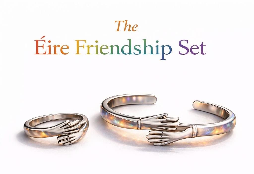 Featuring both the Éire Friendship Ring and Bracelet, this set captures connection in its purest form: two hands meeting, holding, and remaining.