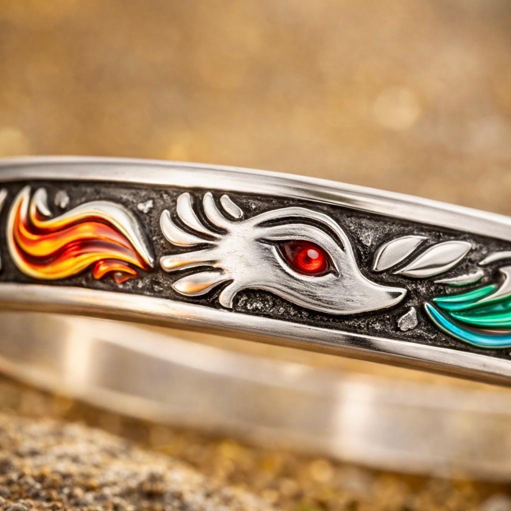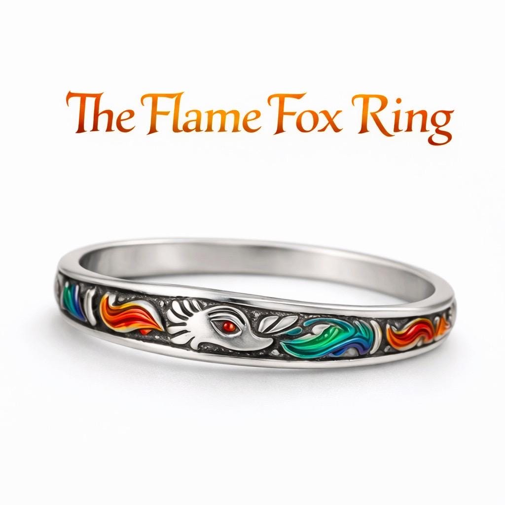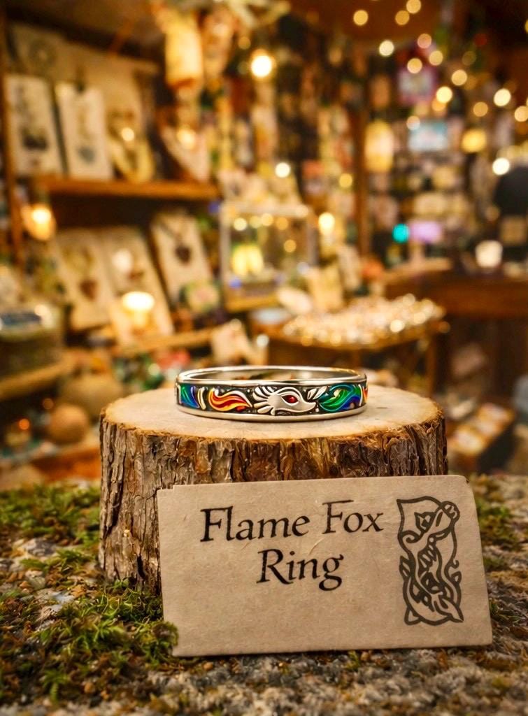 This thin, lightweight band carries a subtle fox design with flowing flame tones, making it both meaningful and easy to wear every day.