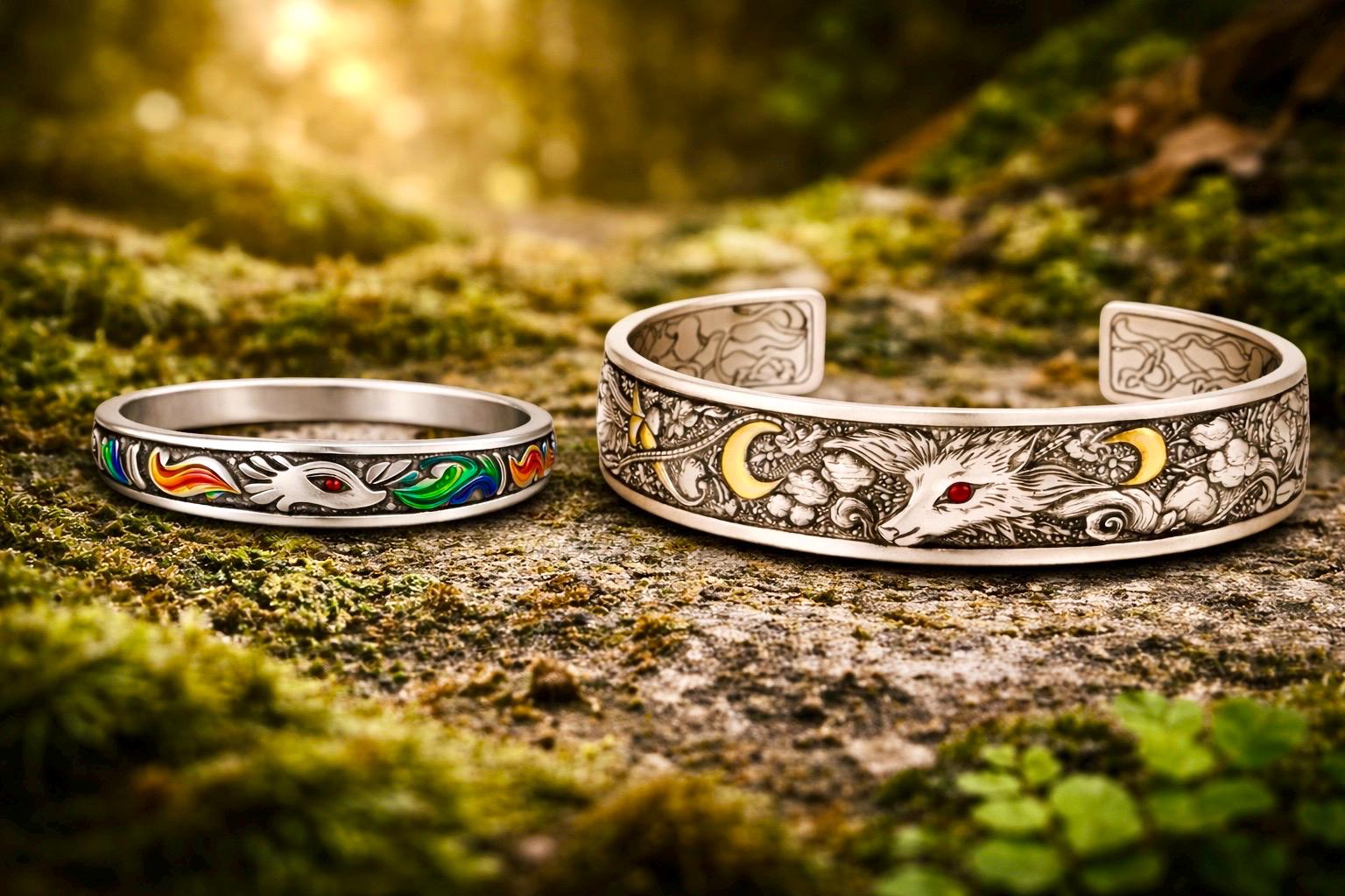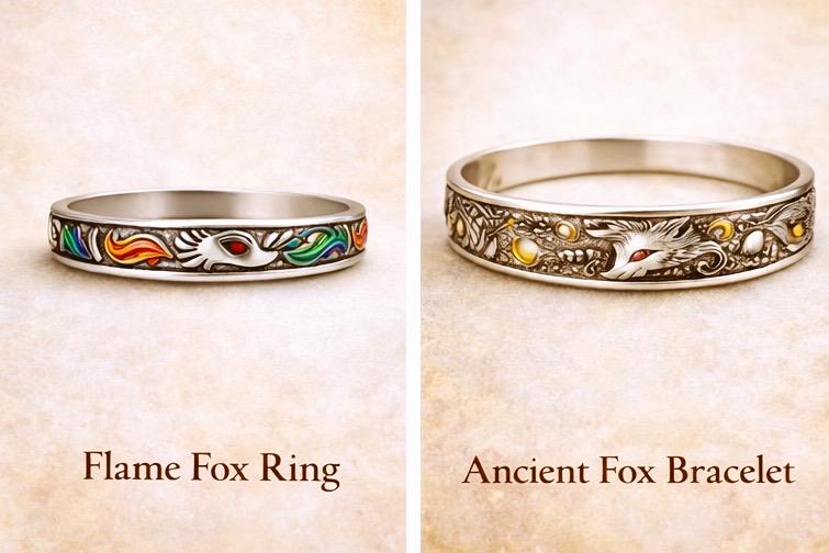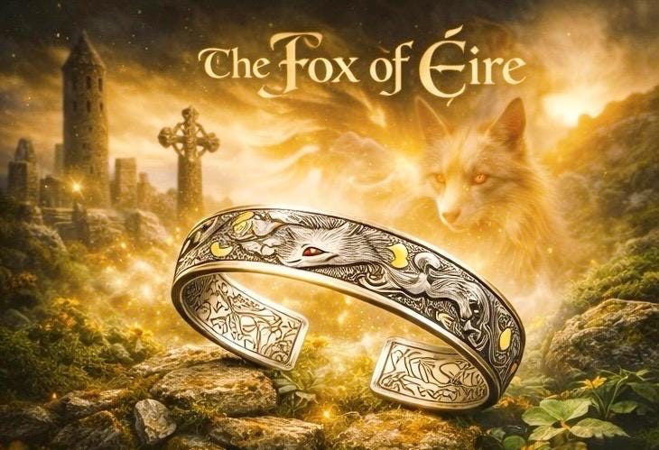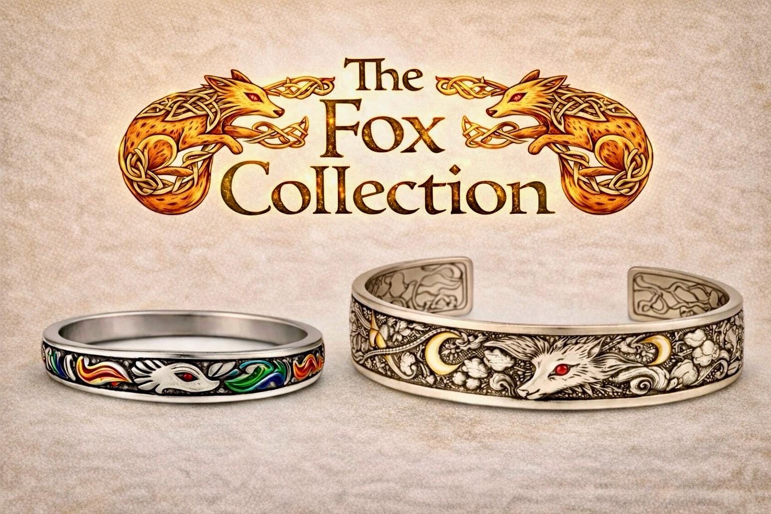 This matching Flame Fox Ring & Bracelet Set is inspired by the fox of Irish folklore — a creature of intelligence, mystery, and transformation. Known to guide those who trust their instincts, the fox represents both protection and inner fire.