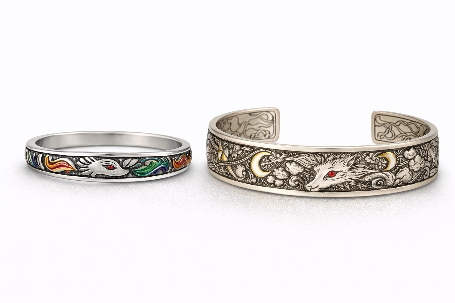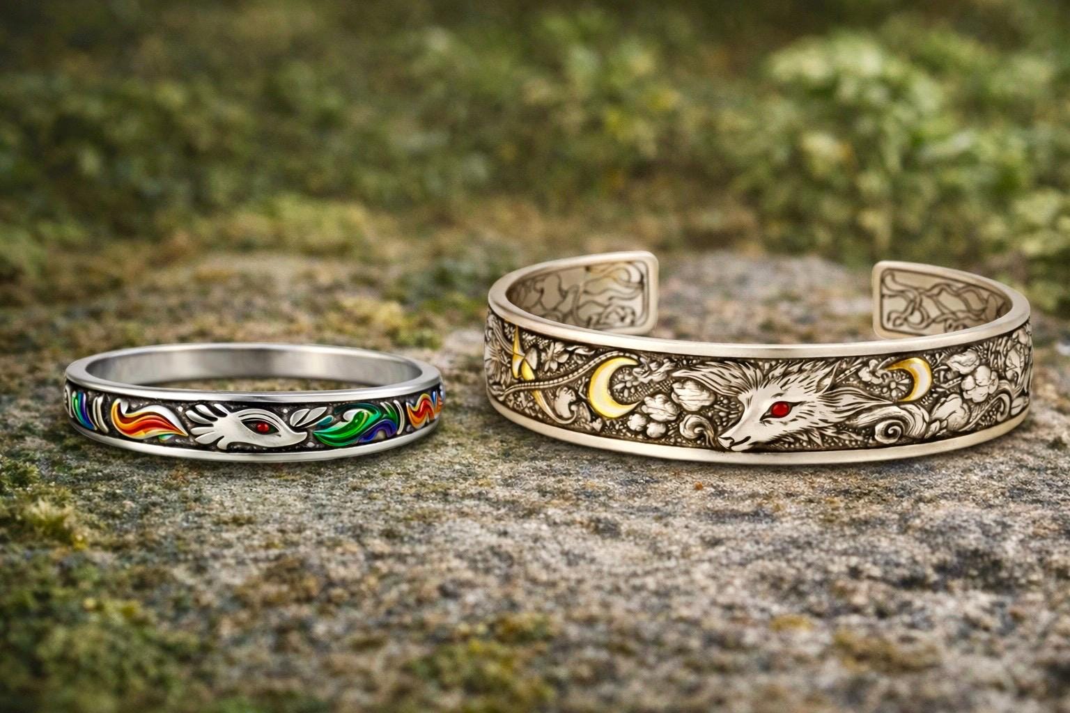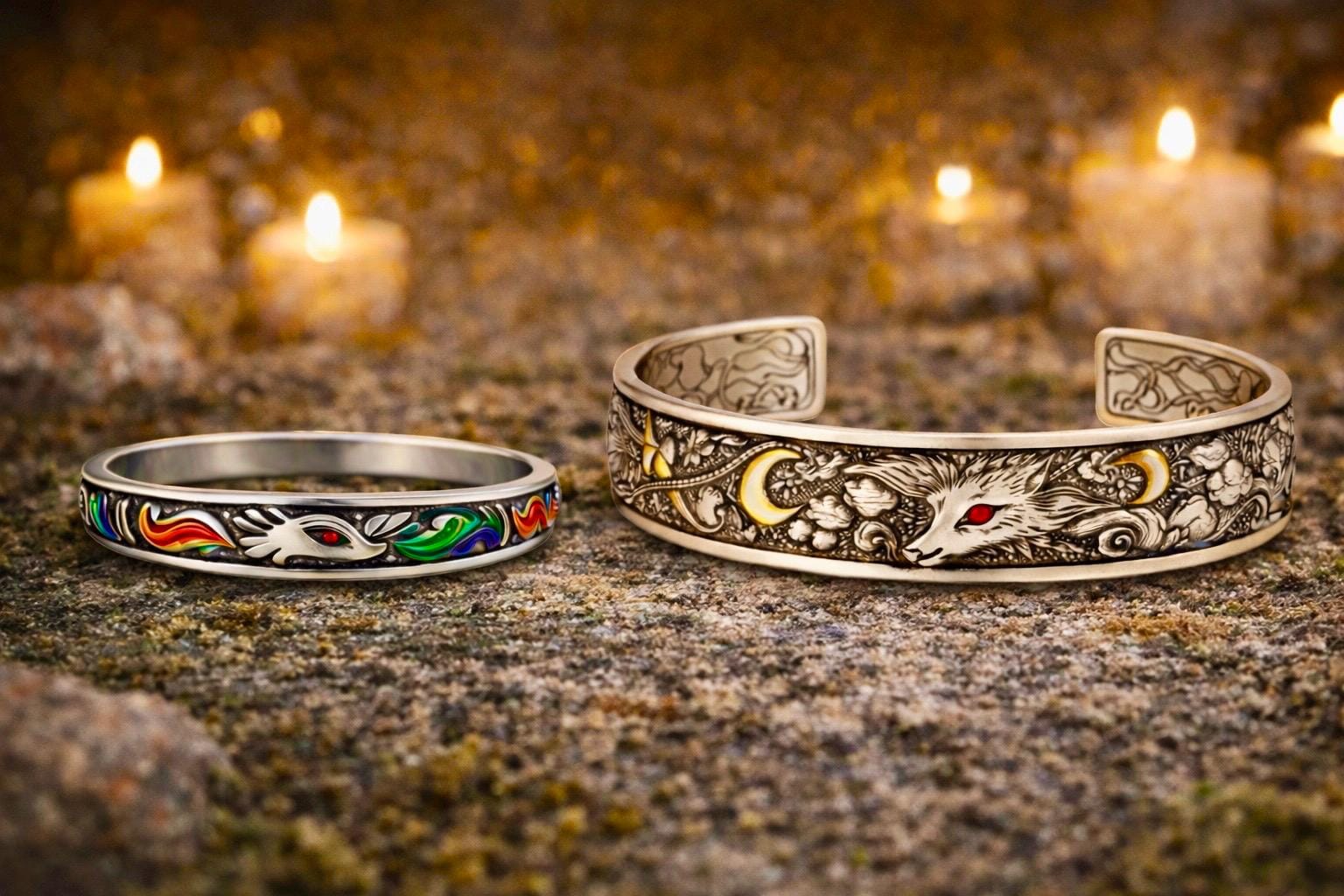 This matching Flame Fox Ring & Bracelet Set is inspired by the fox of Irish folklore — a creature of intelligence, mystery, and transformation. Known to guide those who trust their instincts, the fox represents both protection and inner fire.
