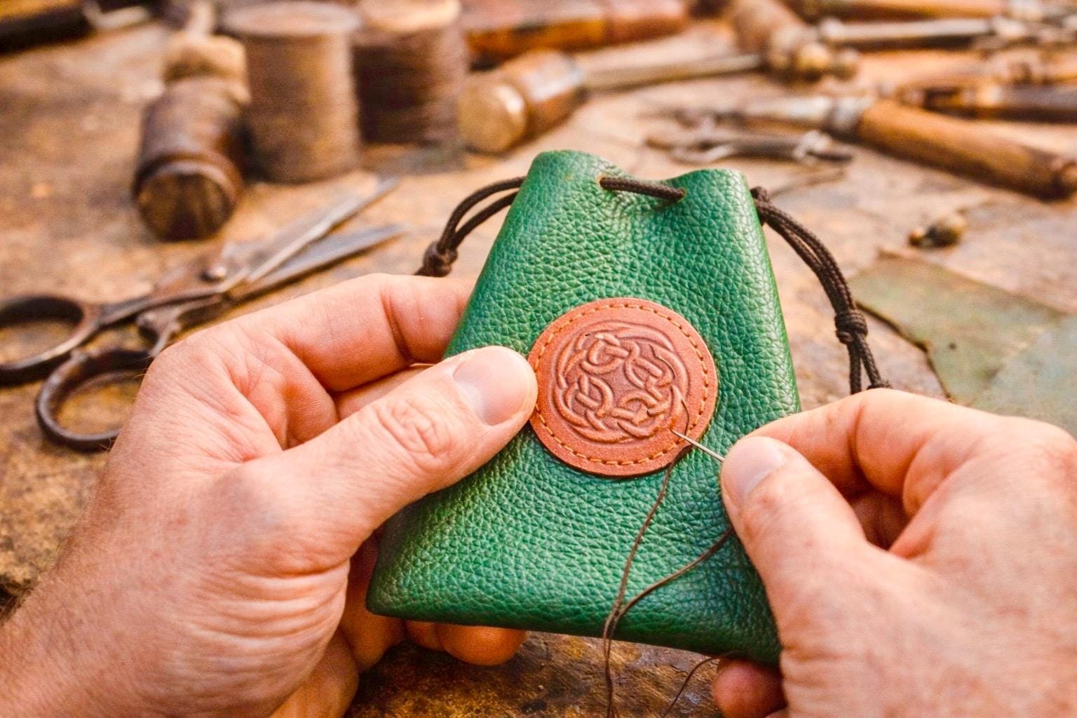 Crafted using traditional leatherworking techniques, each pouch carries the marks of real hands and careful work — no two are ever exactly the same.