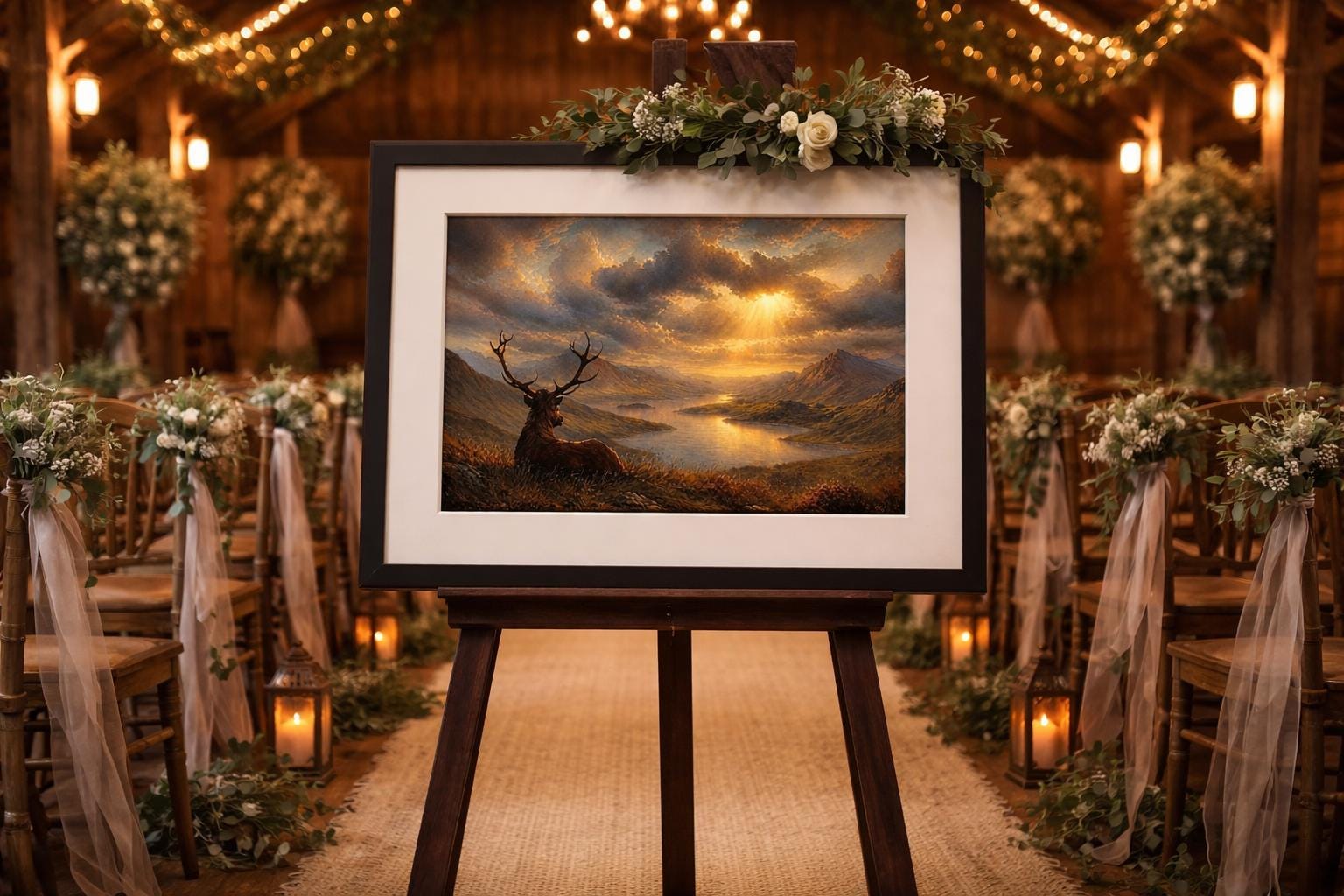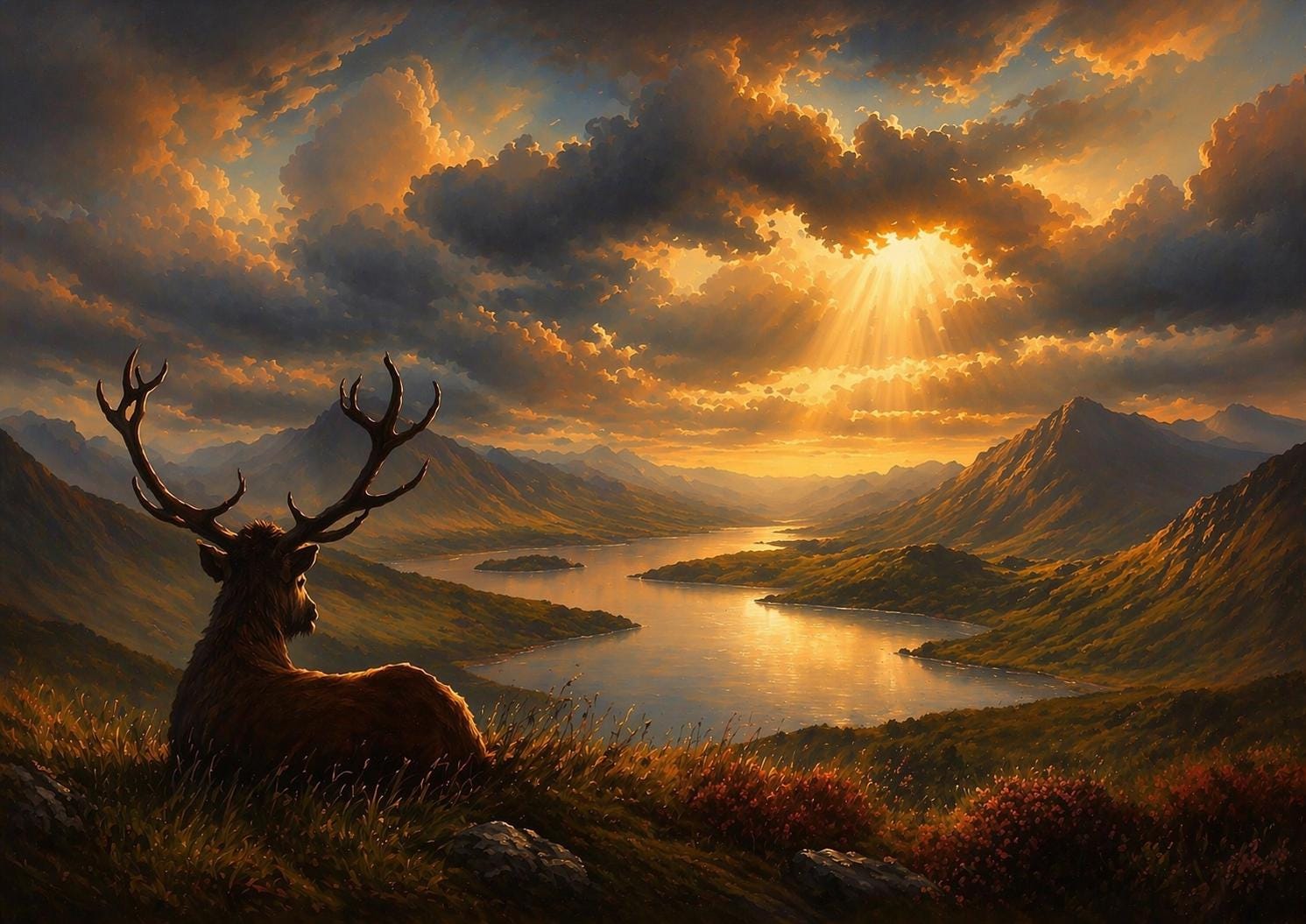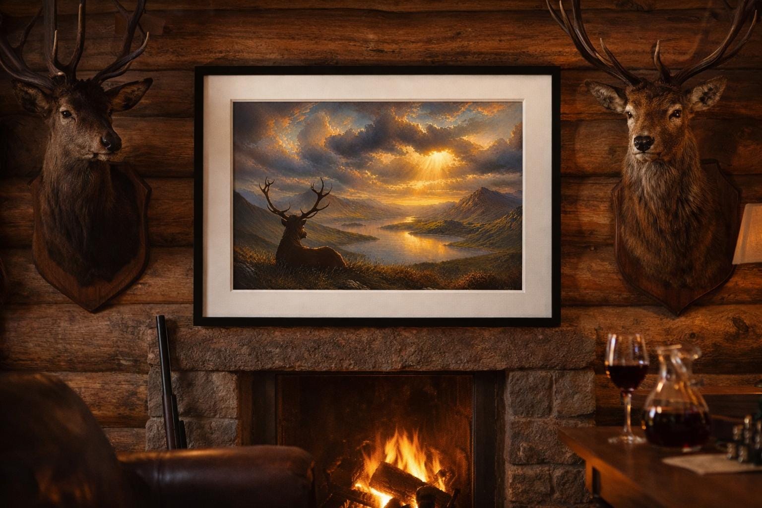 Majestic Stag Over Irish Valley – Original DeBurca Art Print