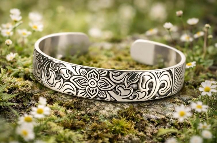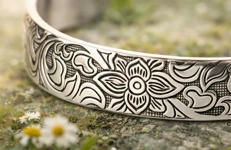 Inspired by the delicate resilience of wild blooms that thrive across the Irish landscape, this sterling silver cuff captures a softer kind of power — one rooted in growth, endurance, and grace.