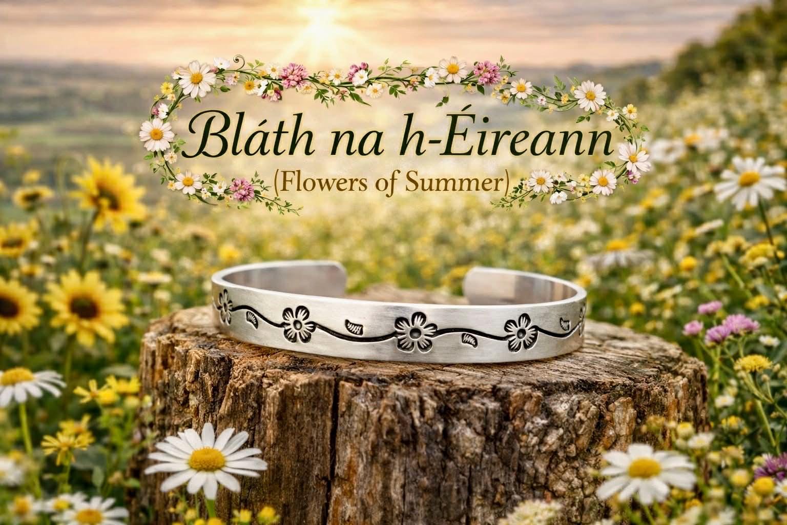 Featuring a delicate daisy ring paired with a handcrafted-style floral cuff, this set reflects the simple elegance of Irish summers — fields dotted with blossoms, soft breezes, and a deep connection to the land.
