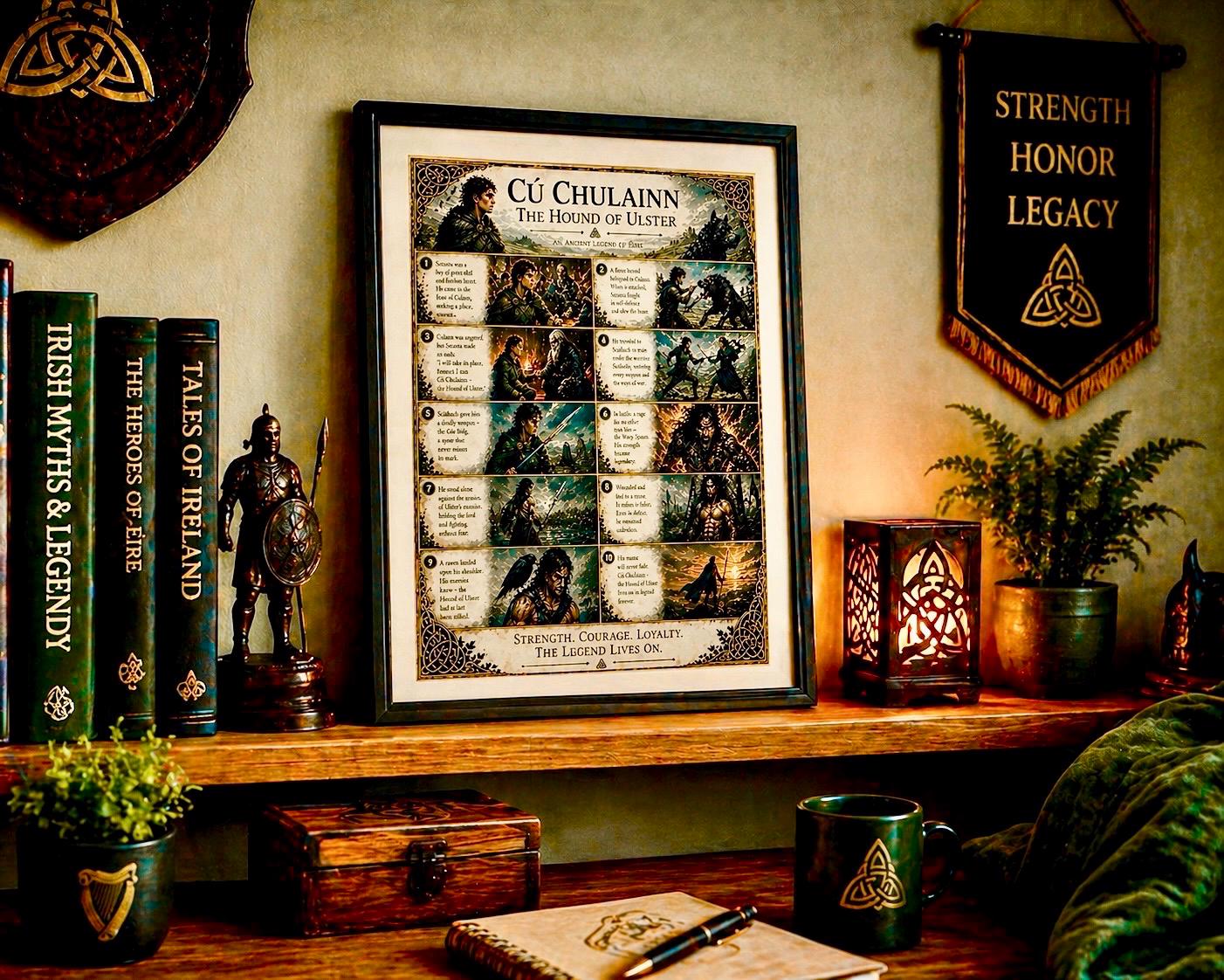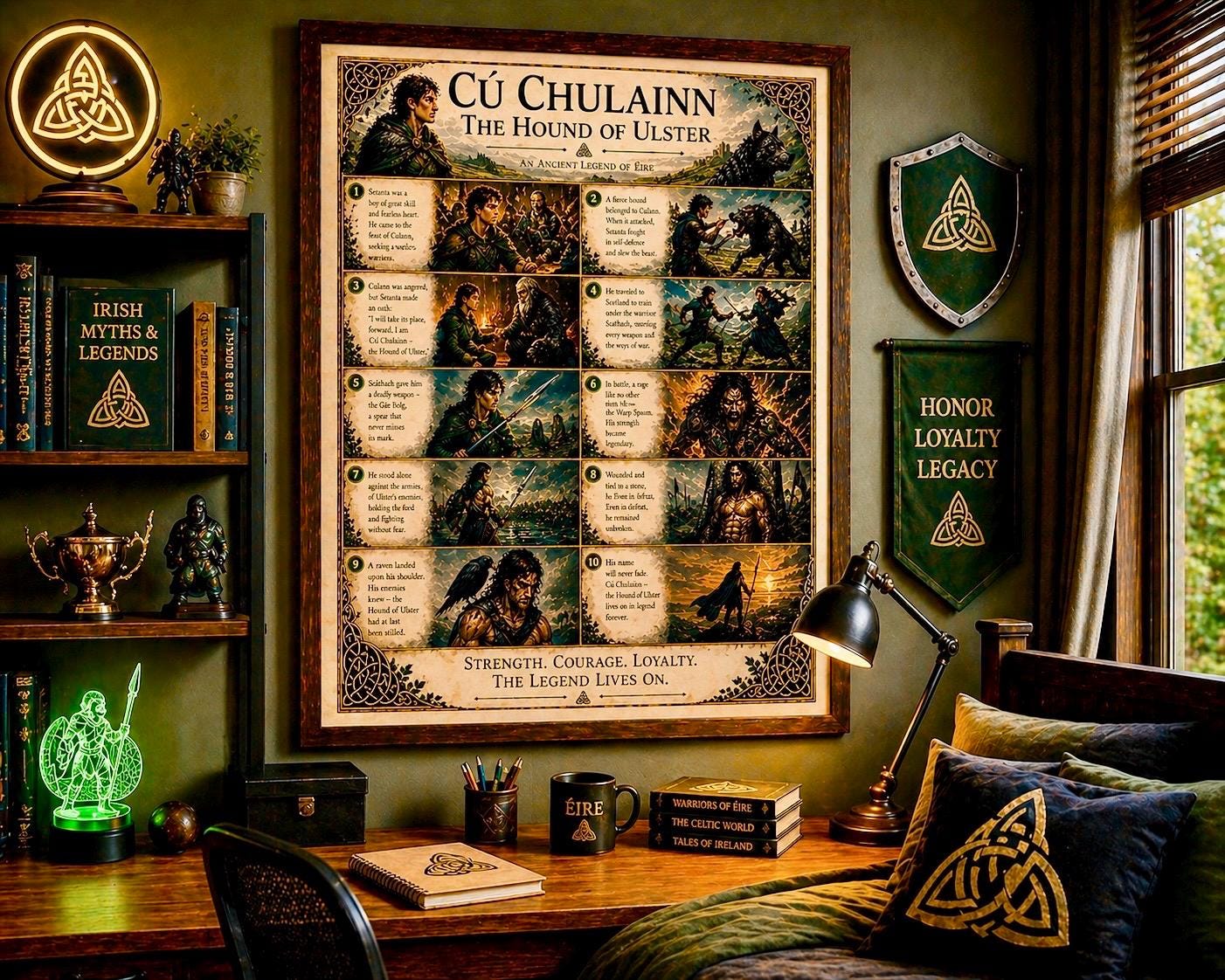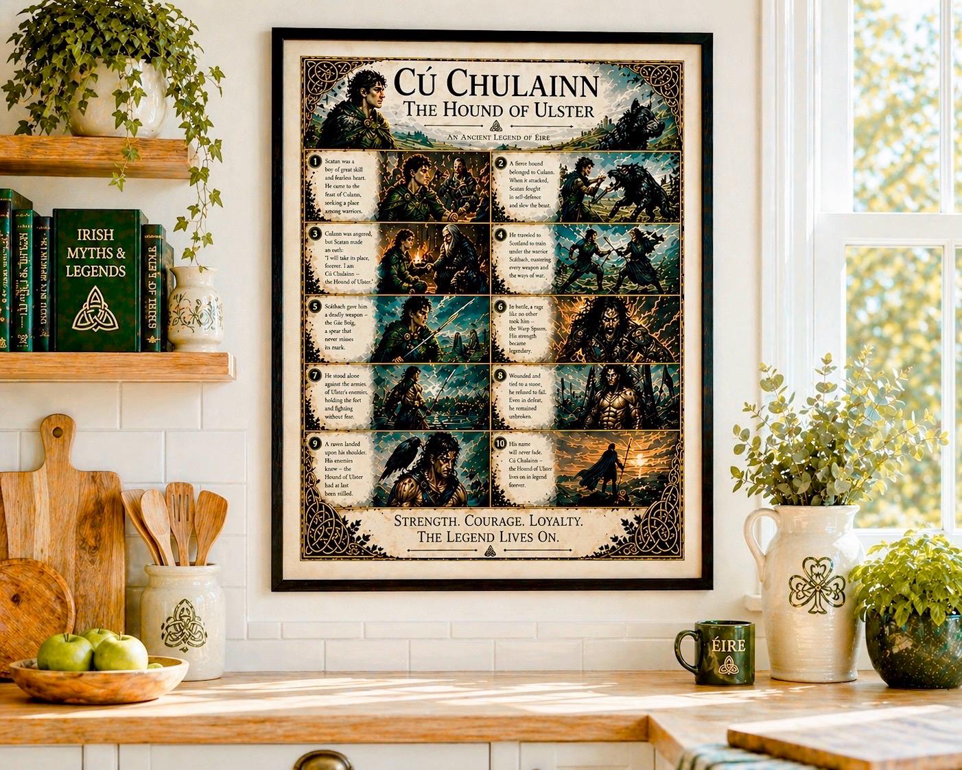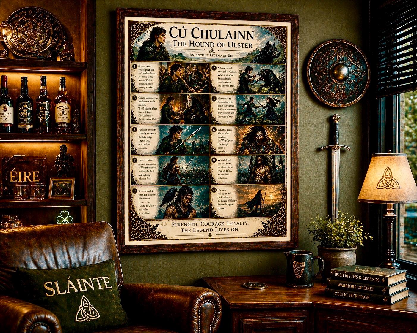 Bring the legendary strength of Cú Chulainn into your home with this powerful Irish mythology print.