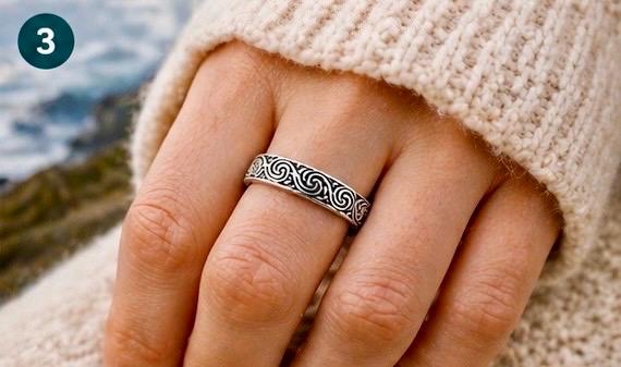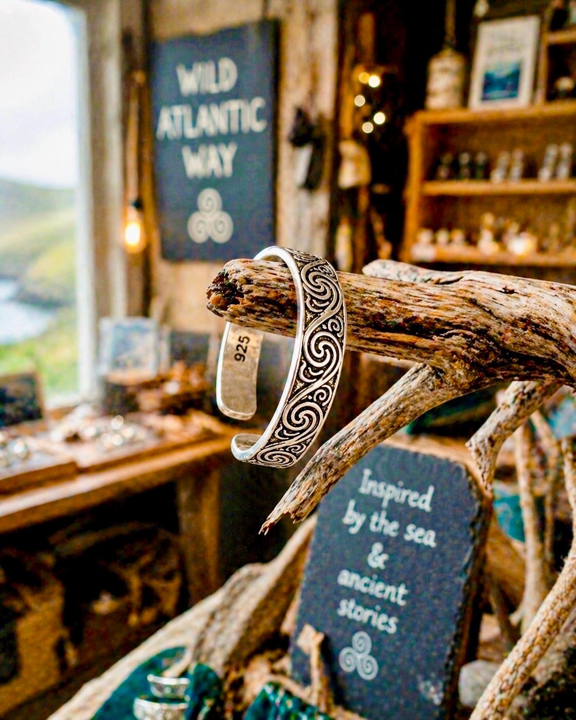 Along Ireland’s Wild Atlantic Way, waves move in endless motion — shaping the coastline just as they have for thousands of years. The flowing spiral pattern of this sterling silver ring reflects those same ancient currents. 🌊