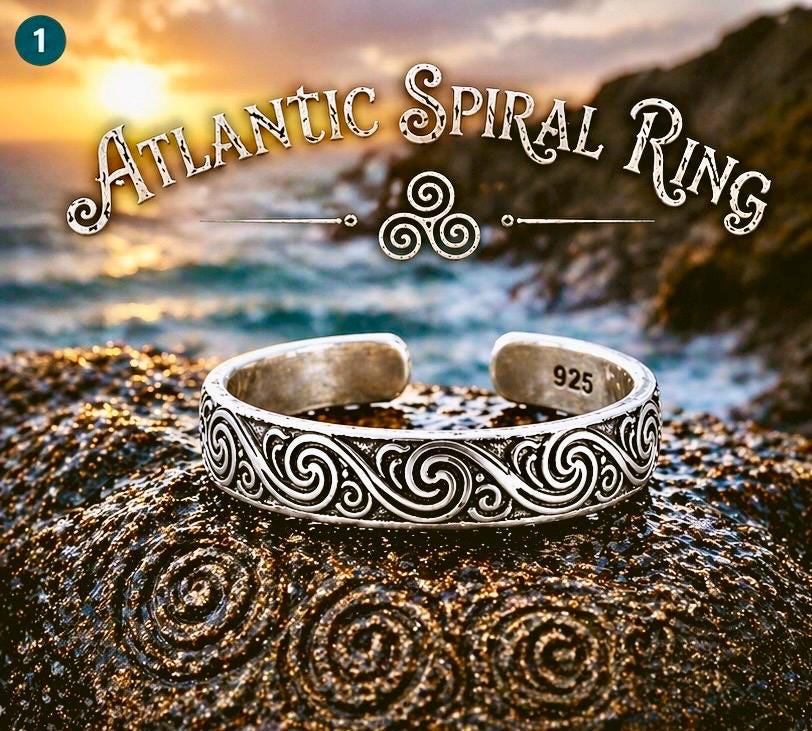 Inspired by the flowing tides of the Atlantic, this sterling silver spiral ring reflects the ancient rhythm of sea, time, and Celtic design.