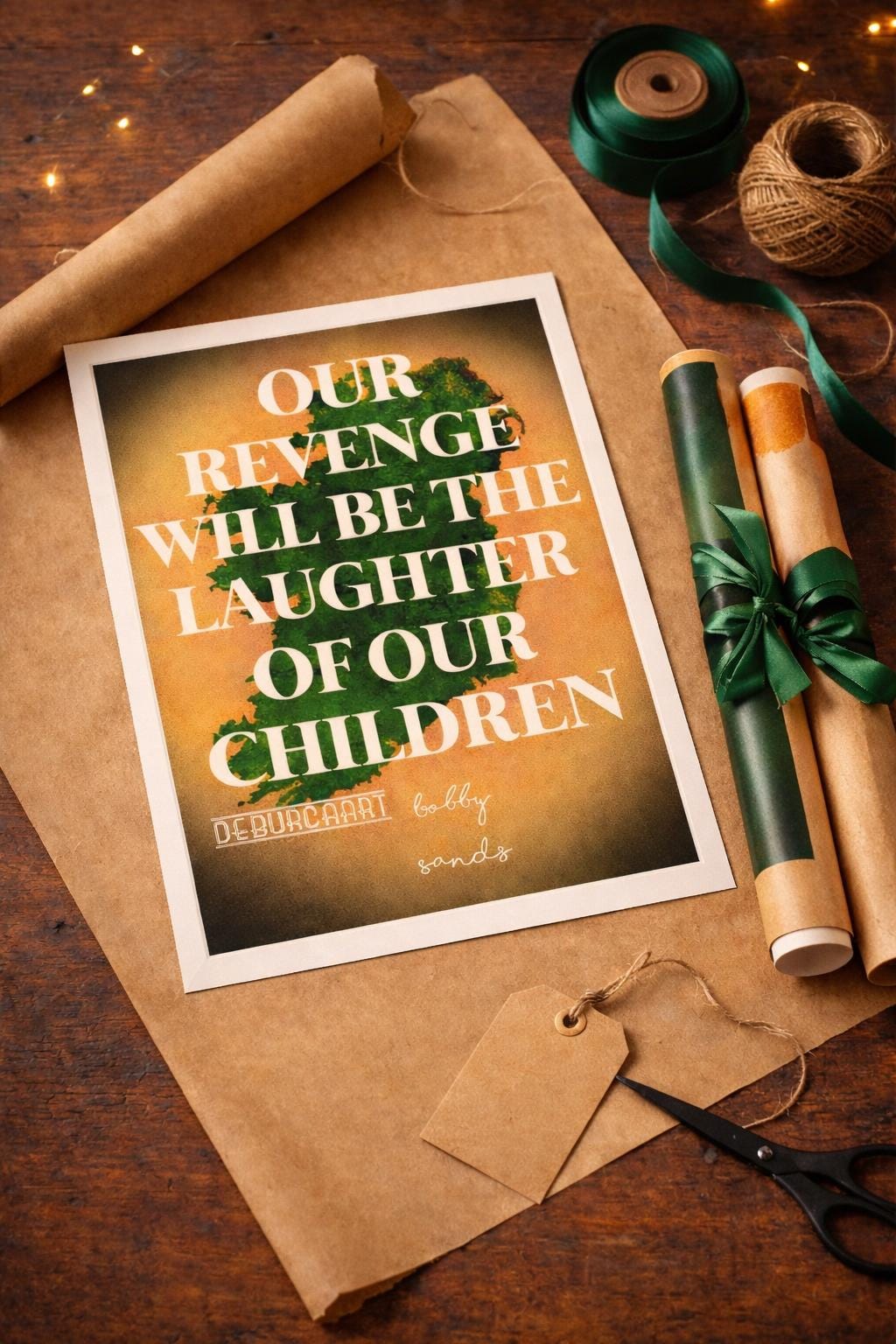 Classic Irish quote by irishman Bobby Sands hand drawn map of Ireland by Deburca art.